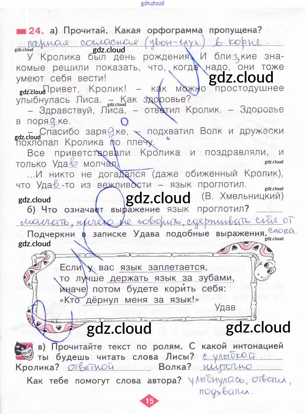 Ответ на задание 15 Рабочая тетрадь Русский язык за 2 (второй) класс Яковлева 2015 Часть 1, 2, 3, 4