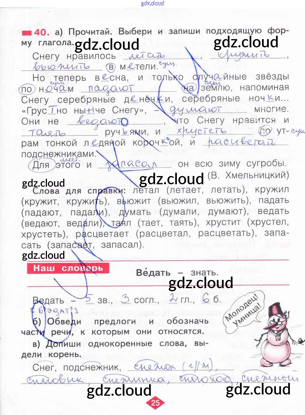 Ответ на задание 25 Рабочая тетрадь Русский язык за 2 (второй) класс Яковлева 2015 Часть 1, 2, 3, 4