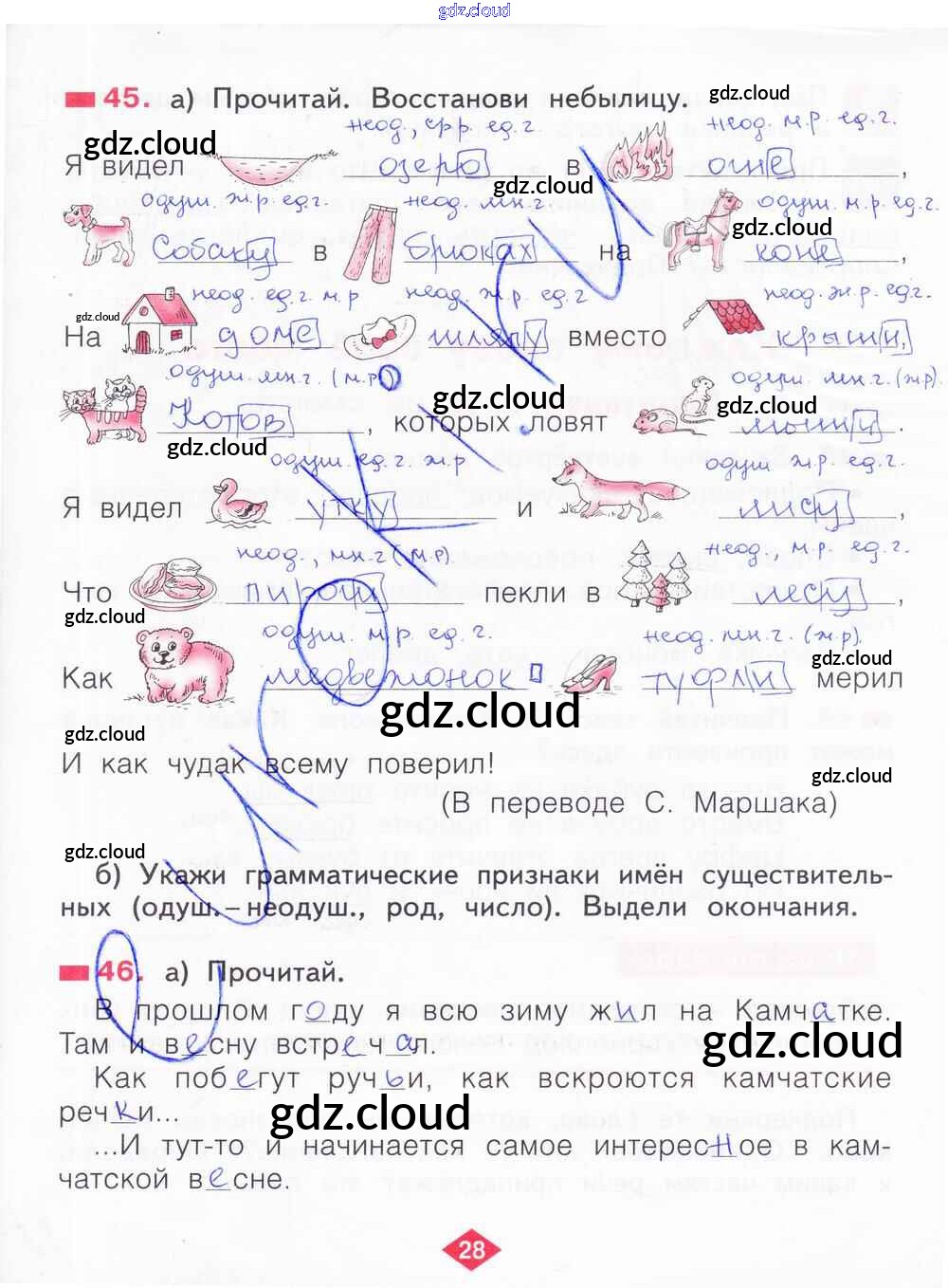 Ответ на задание 28 Рабочая тетрадь Русский язык за 2 (второй) класс Яковлева 2015 Часть 1, 2, 3, 4