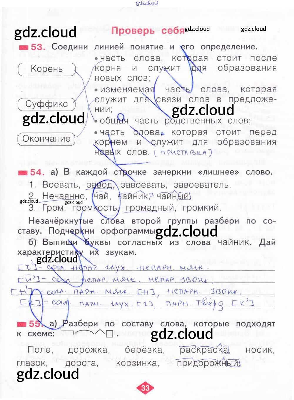 Ответ на задание 33 Рабочая тетрадь Русский язык за 2 (второй) класс Яковлева 2015 Часть 1, 2, 3, 4