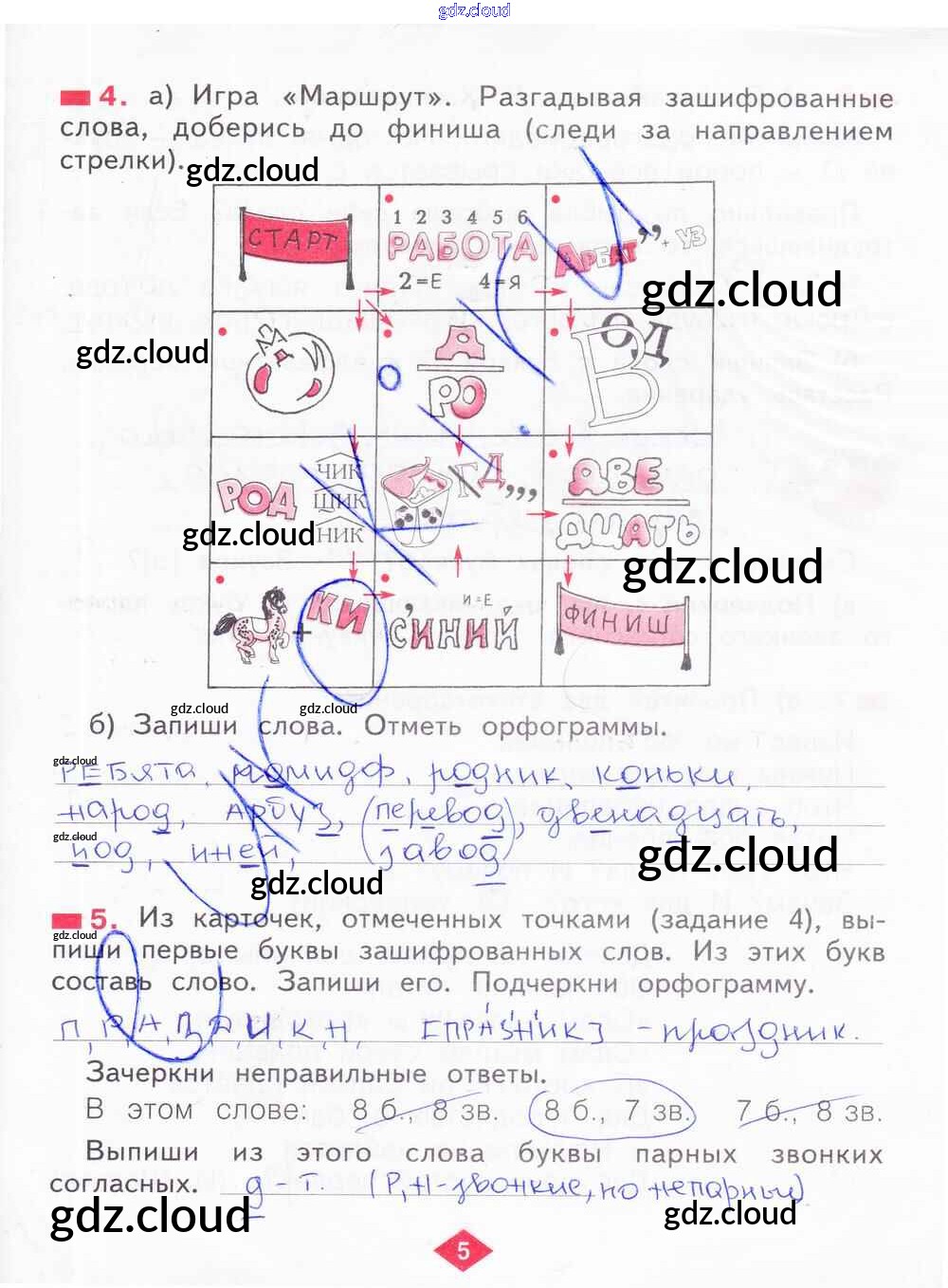 Ответ на задание 5 Рабочая тетрадь Русский язык за 2 (второй) класс Яковлева 2015 Часть 1, 2, 3, 4