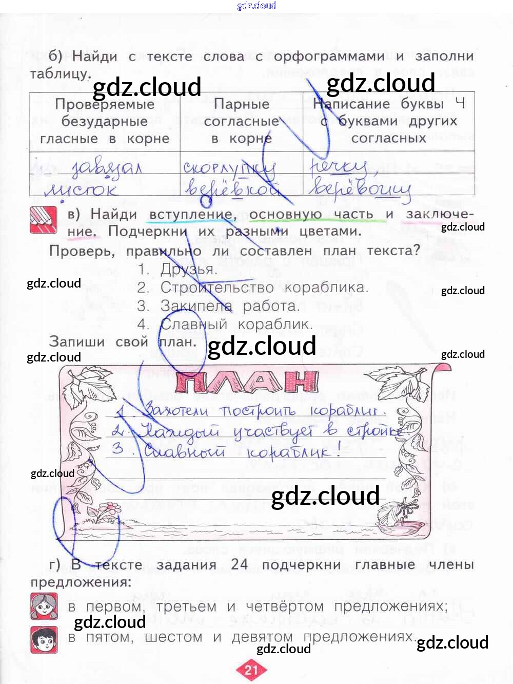 Ответ на задание 21 Рабочая тетрадь Русский язык за 2 (второй) класс Яковлева 2015 Часть 1, 2, 3, 4
