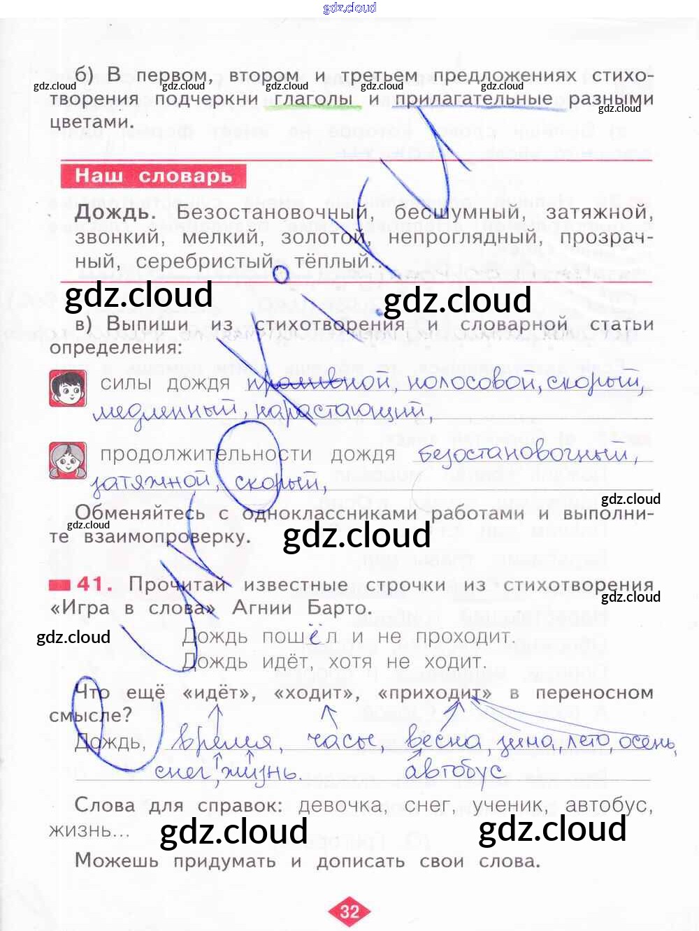 Ответ на задание 32 Рабочая тетрадь Русский язык за 2 (второй) класс Яковлева 2015 Часть 1, 2, 3, 4
