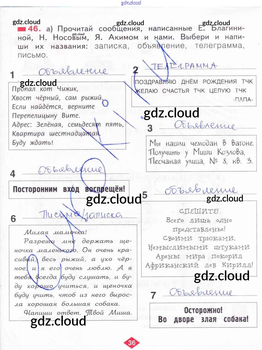 Ответ на задание 36 Рабочая тетрадь Русский язык за 2 (второй) класс Яковлева 2015 Часть 1, 2, 3, 4