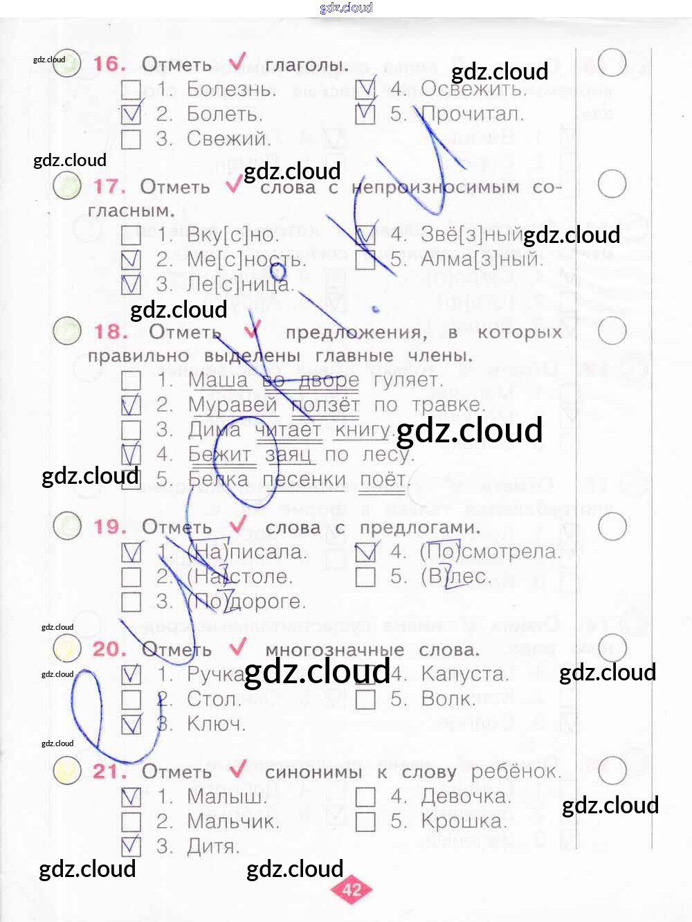 Ответ на задание 42 Рабочая тетрадь Русский язык за 2 (второй) класс Яковлева 2015 Часть 1, 2, 3, 4
