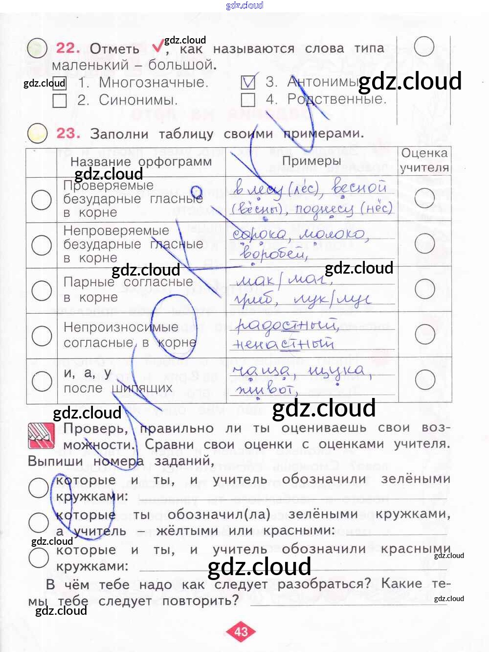 Ответ на задание 43 Рабочая тетрадь Русский язык за 2 (второй) класс Яковлева 2015 Часть 1, 2, 3, 4