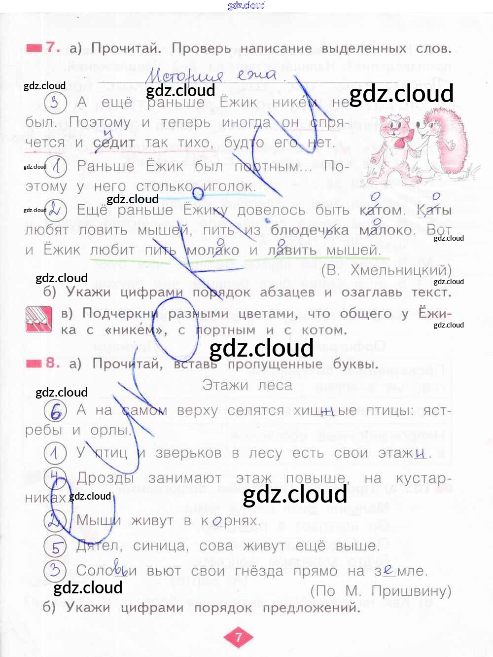 Ответ на задание 7 Рабочая тетрадь Русский язык за 2 (второй) класс Яковлева 2015 Часть 1, 2, 3, 4