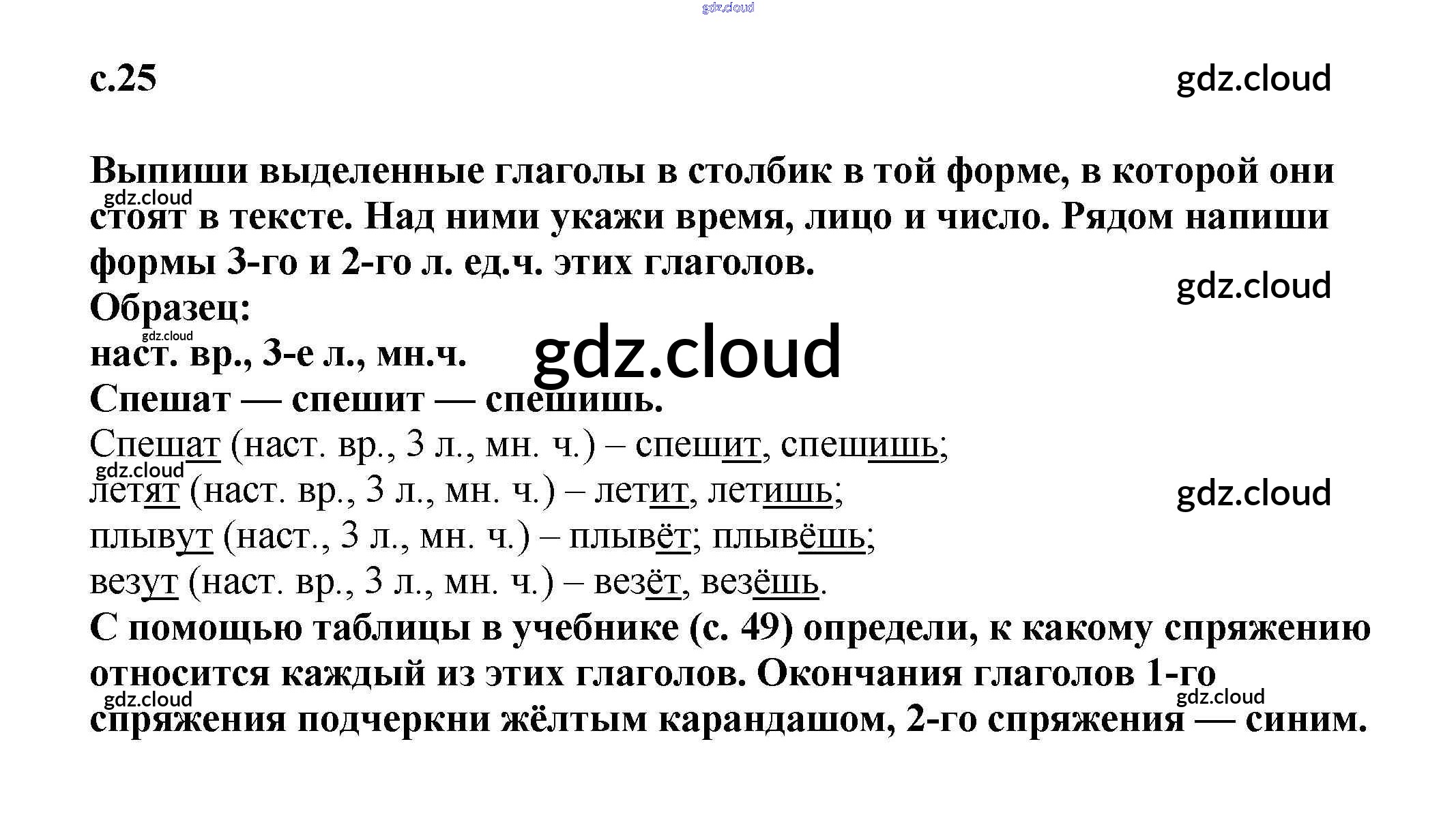 Ответ на задание 25 Тетрадь для самостоятельной работы Русский язык за 3 (третий) класс Байкова 2017 Часть 1, 2