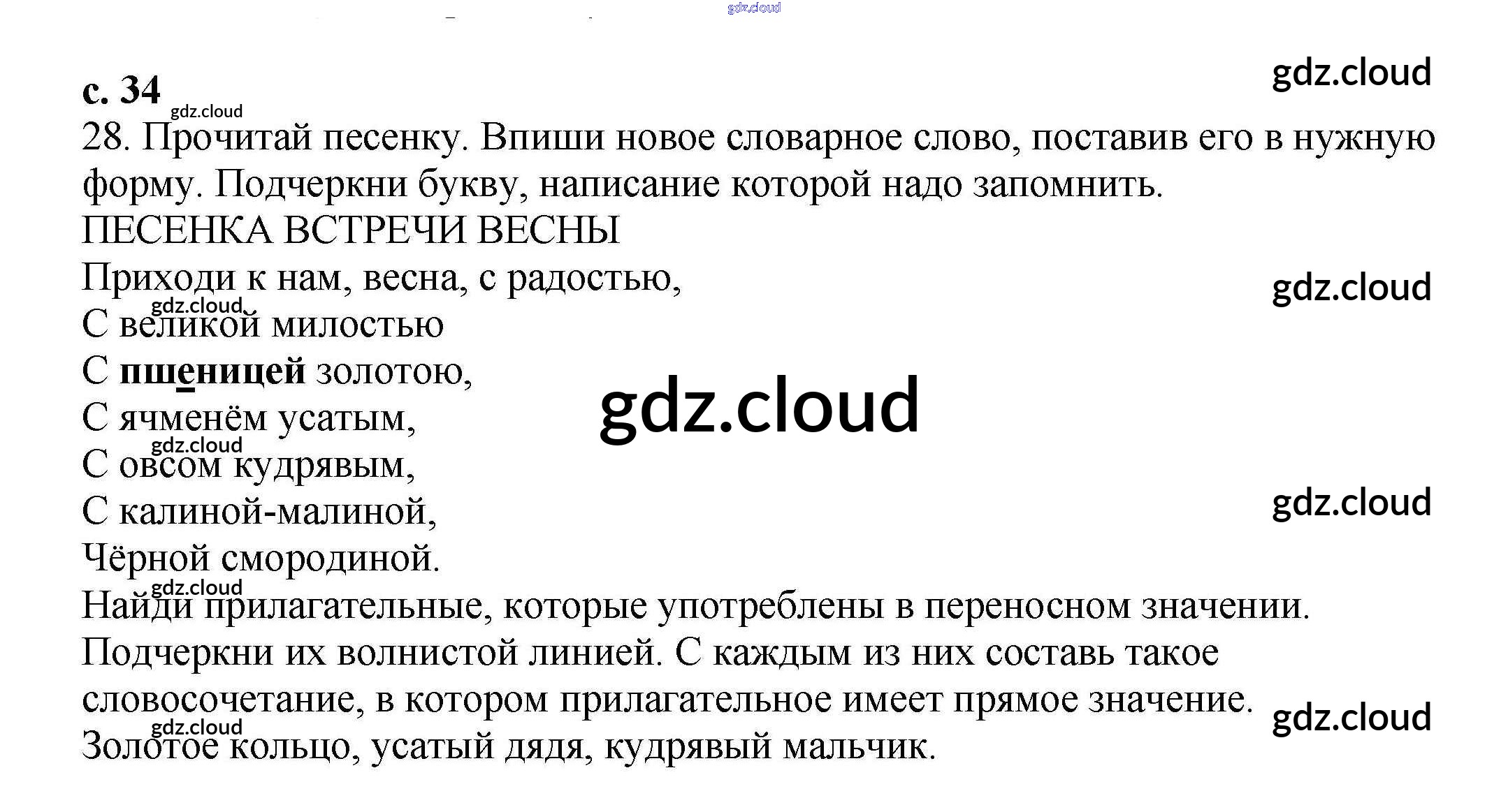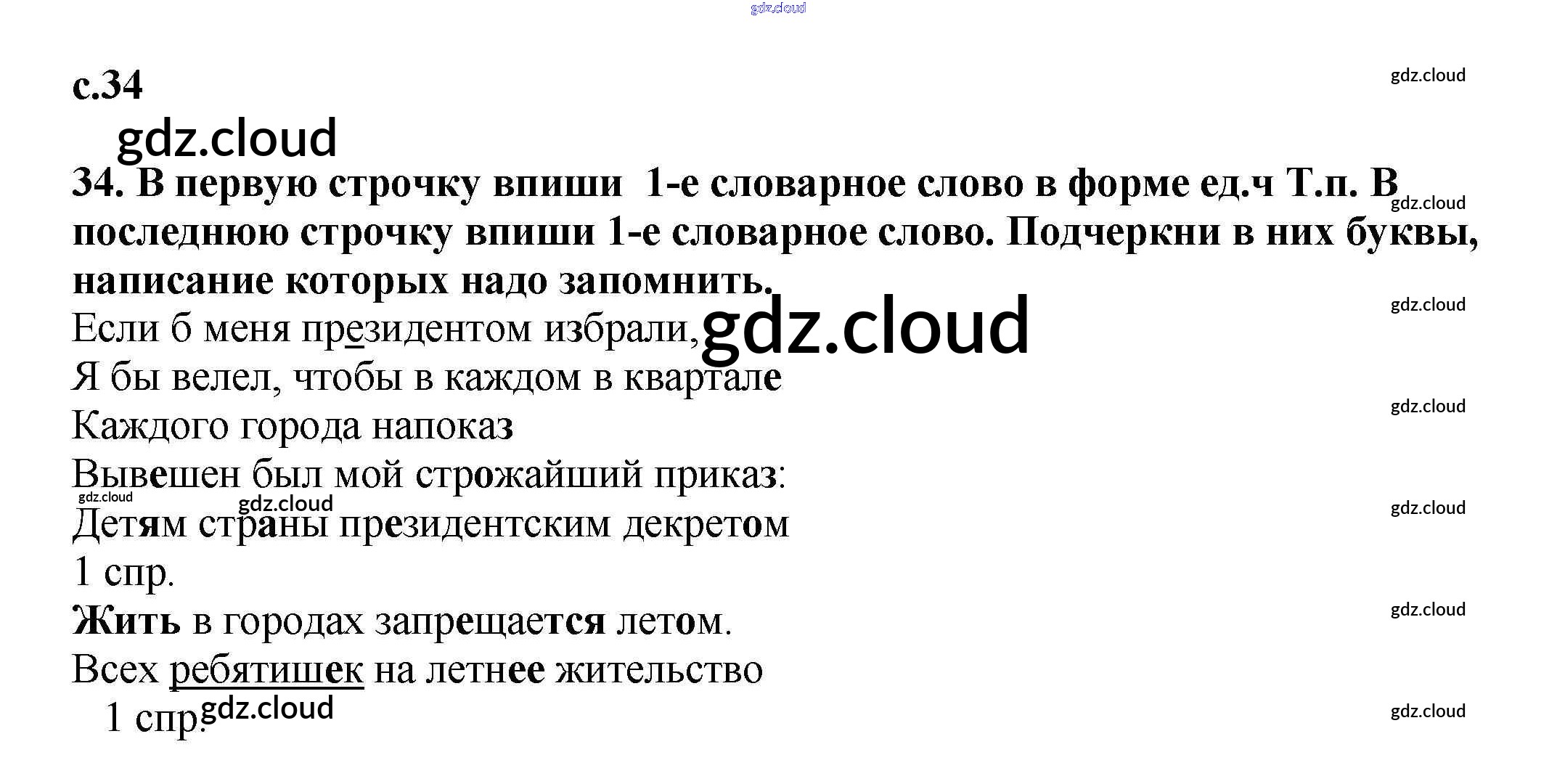 Ответ на задание 34 Тетрадь для самостоятельной работы Русский язык за 3 (третий) класс Байкова 2017 Часть 1, 2