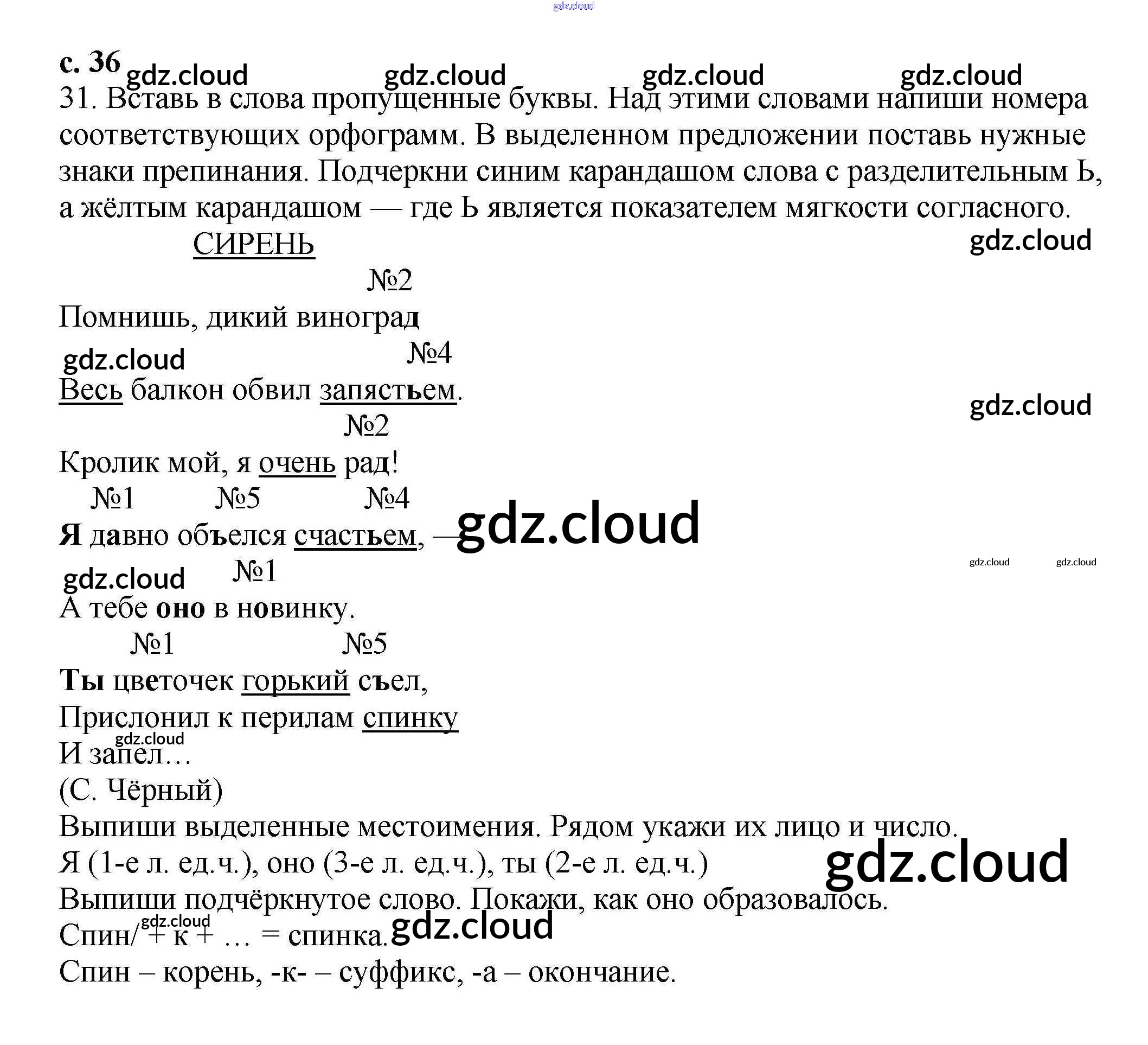 Ответ на задание 36 Тетрадь для самостоятельной работы Русский язык за 3 (третий) класс Байкова 2017 Часть 1, 2