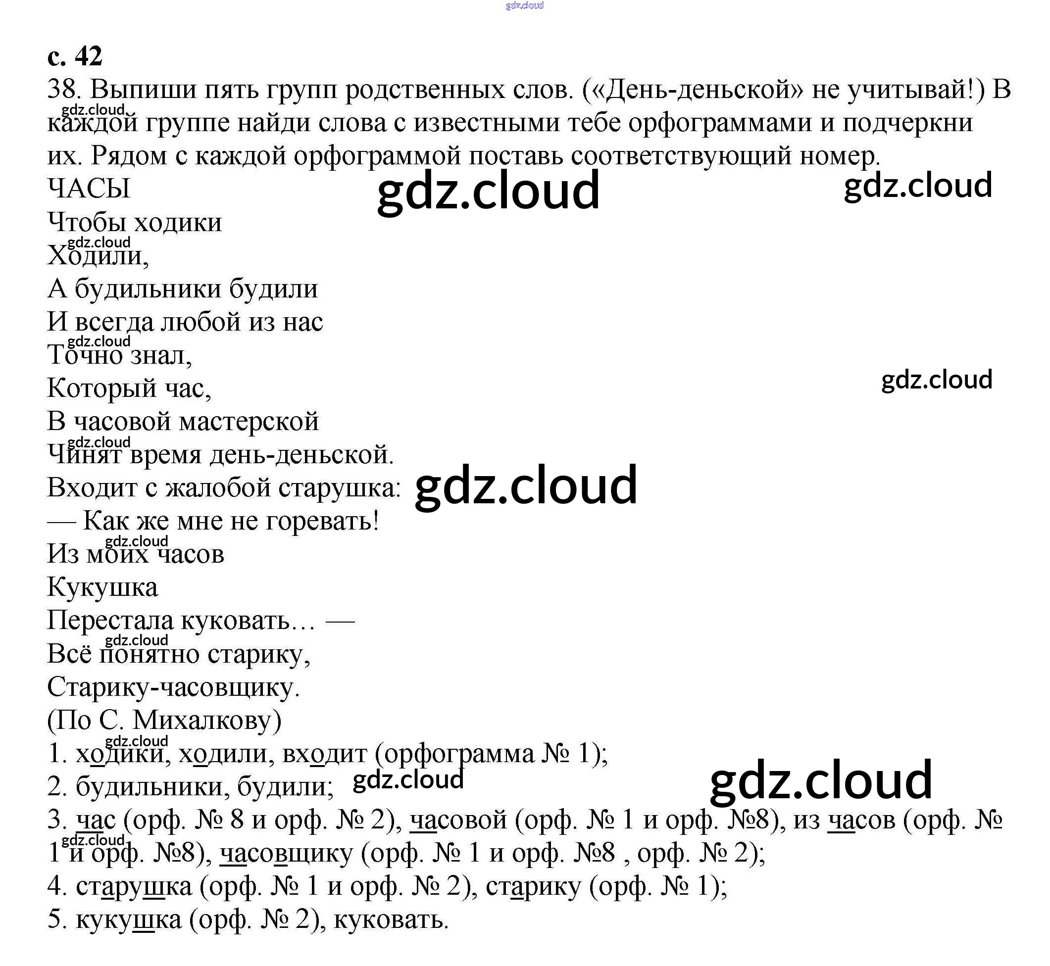 Ответ на задание 42 Тетрадь для самостоятельной работы Русский язык за 3 (третий) класс Байкова 2017 Часть 1, 2