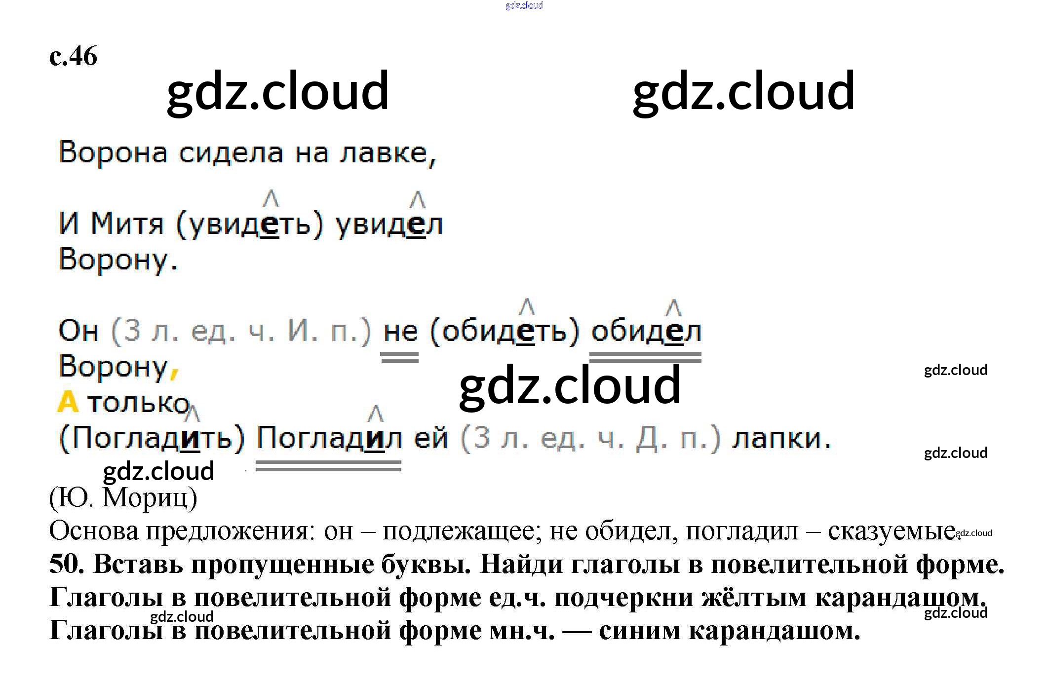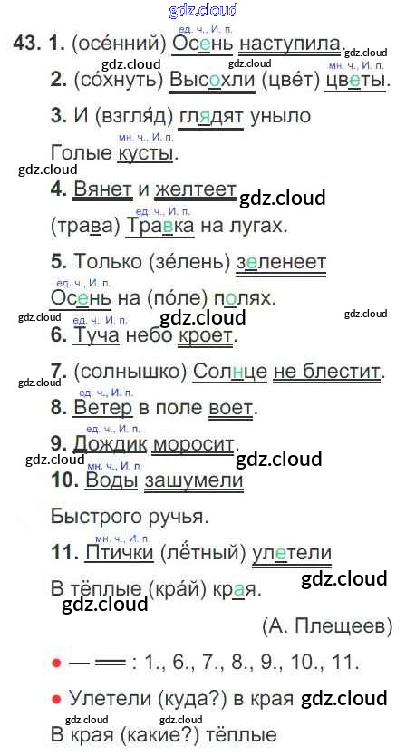 Ответ на задание 46 Тетрадь для самостоятельной работы Русский язык за 3 (третий) класс Байкова 2017 Часть 1, 2