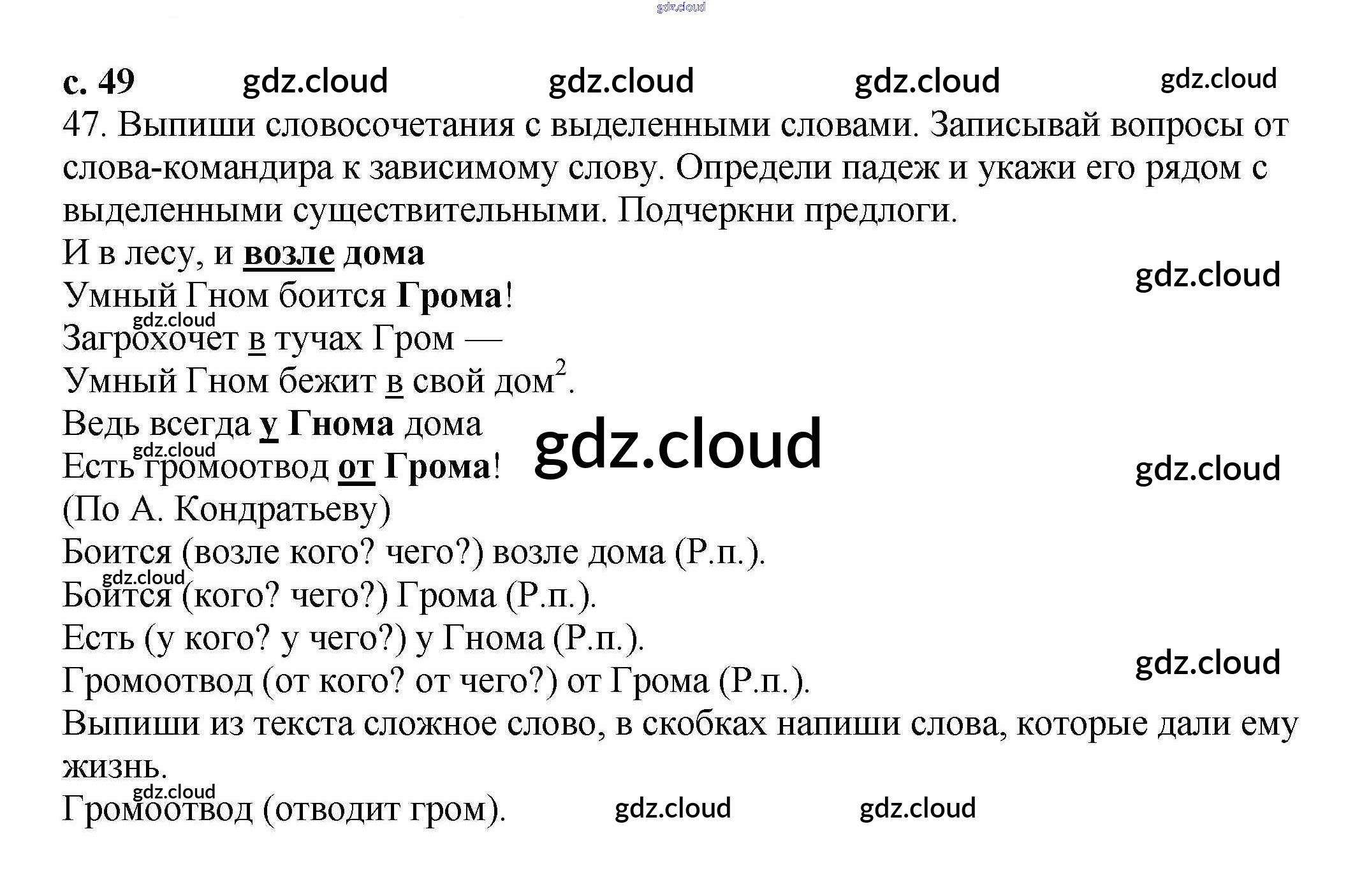 Ответ на задание 49 Тетрадь для самостоятельной работы Русский язык за 3 (третий) класс Байкова 2017 Часть 1, 2