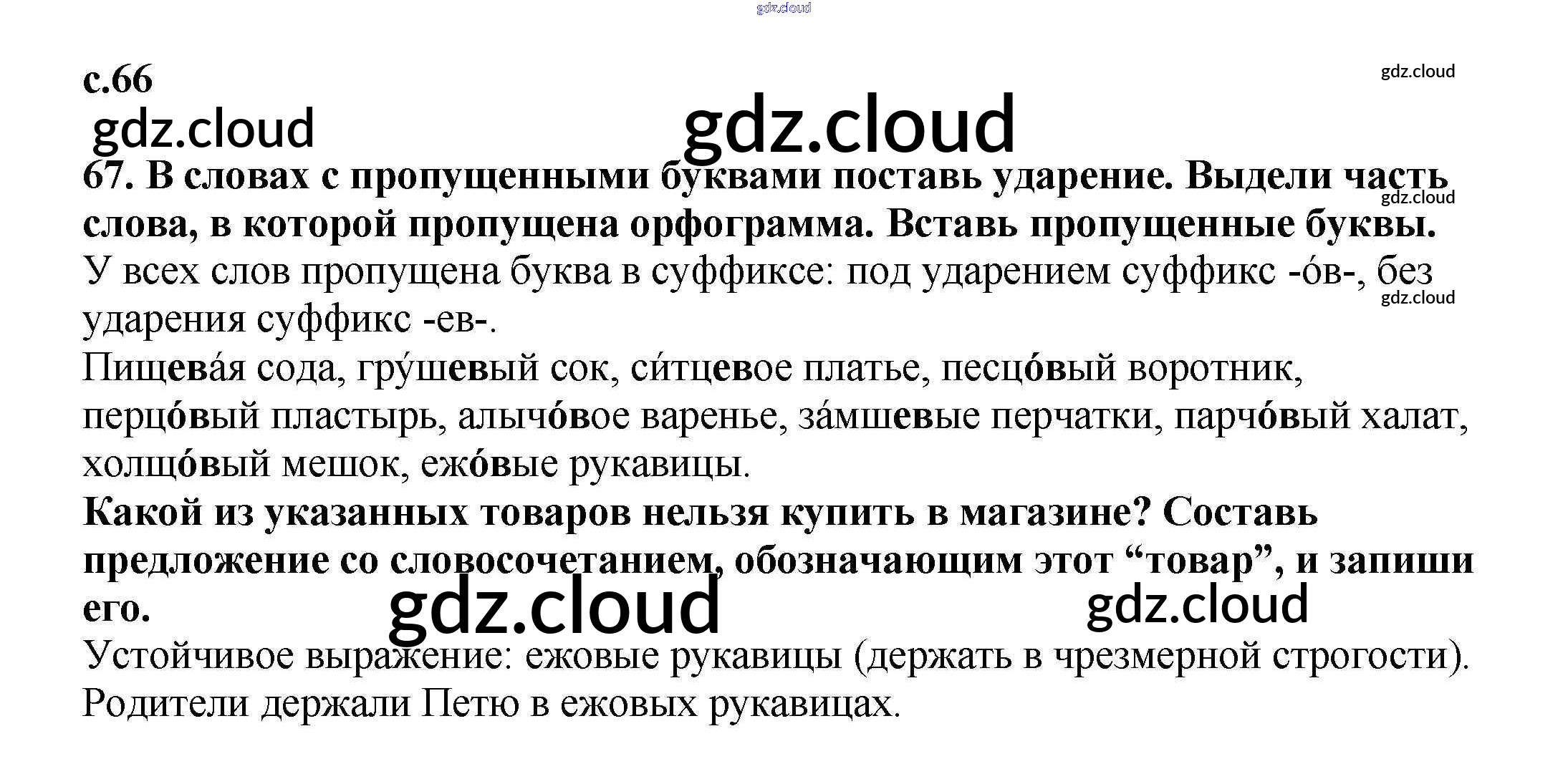 Ответ на задание 66 Тетрадь для самостоятельной работы Русский язык за 3 (третий) класс Байкова 2017 Часть 1, 2