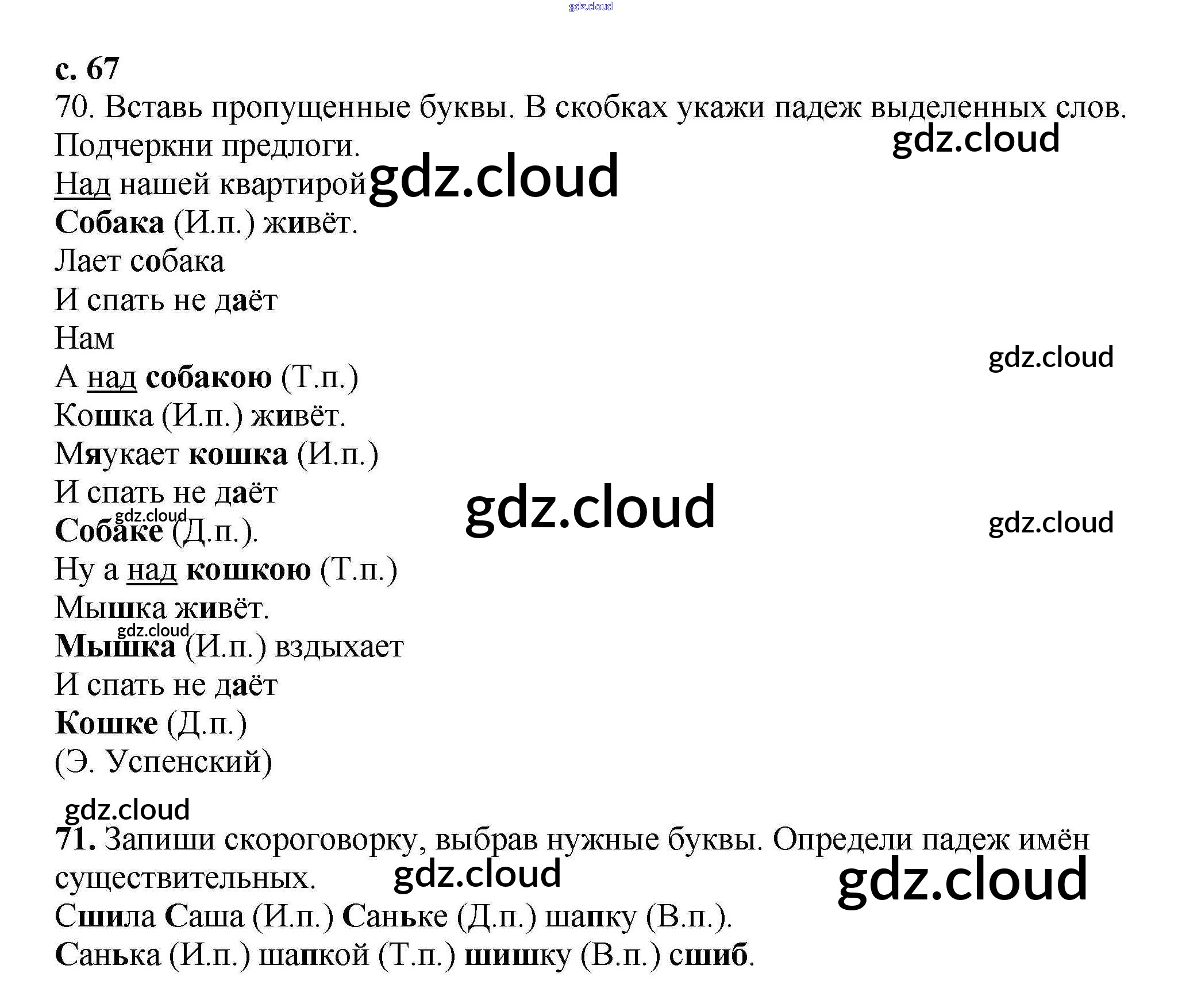 Ответ на задание 67 Тетрадь для самостоятельной работы Русский язык за 3 (третий) класс Байкова 2017 Часть 1, 2