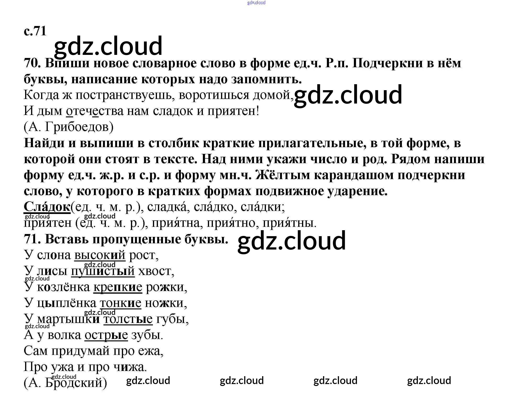 Ответ на задание 71 Тетрадь для самостоятельной работы Русский язык за 3 (третий) класс Байкова 2017 Часть 1, 2