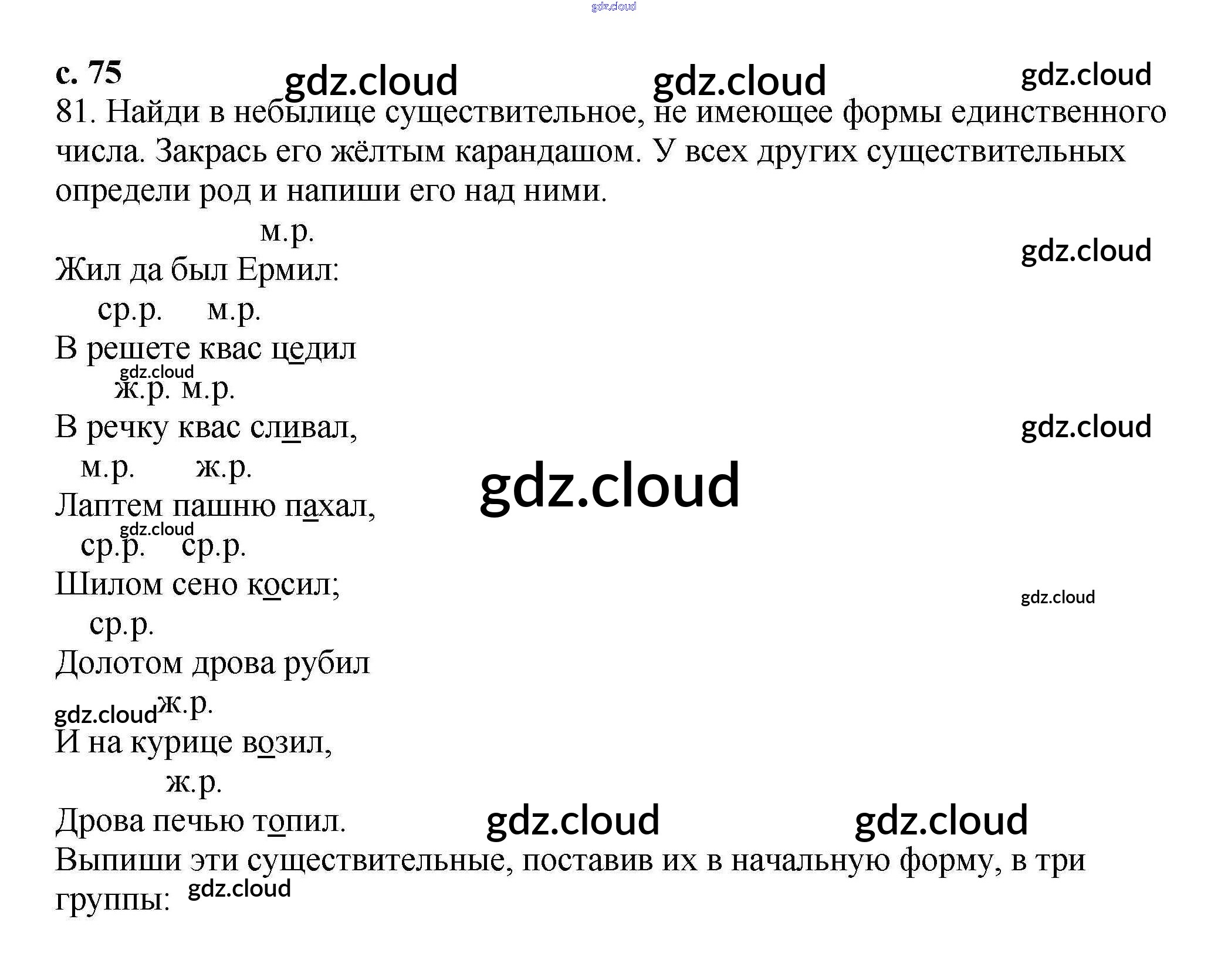 Ответ на задание 75 Тетрадь для самостоятельной работы Русский язык за 3 (третий) класс Байкова 2017 Часть 1, 2