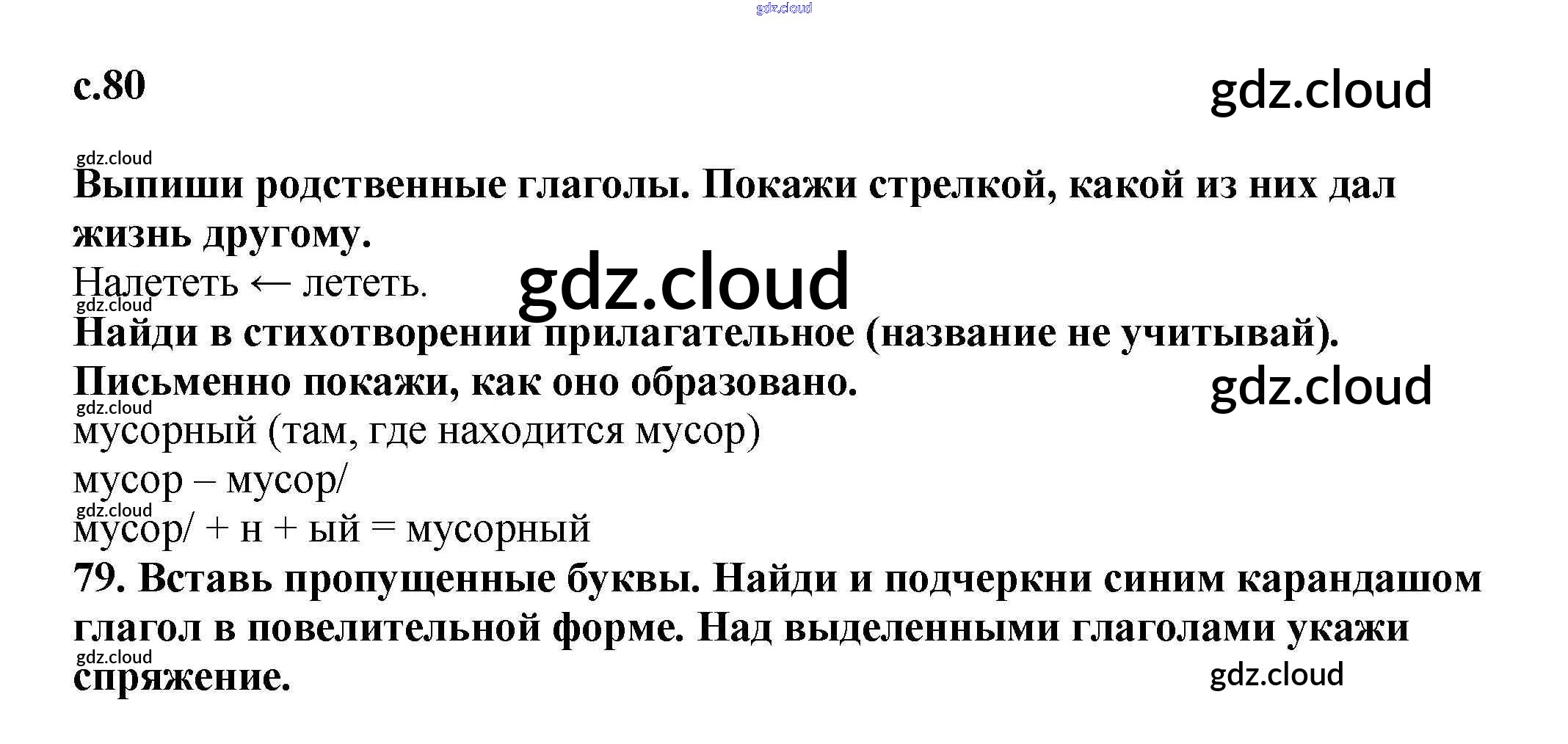 Ответ на задание 80 Тетрадь для самостоятельной работы Русский язык за 3 (третий) класс Байкова 2017 Часть 1, 2