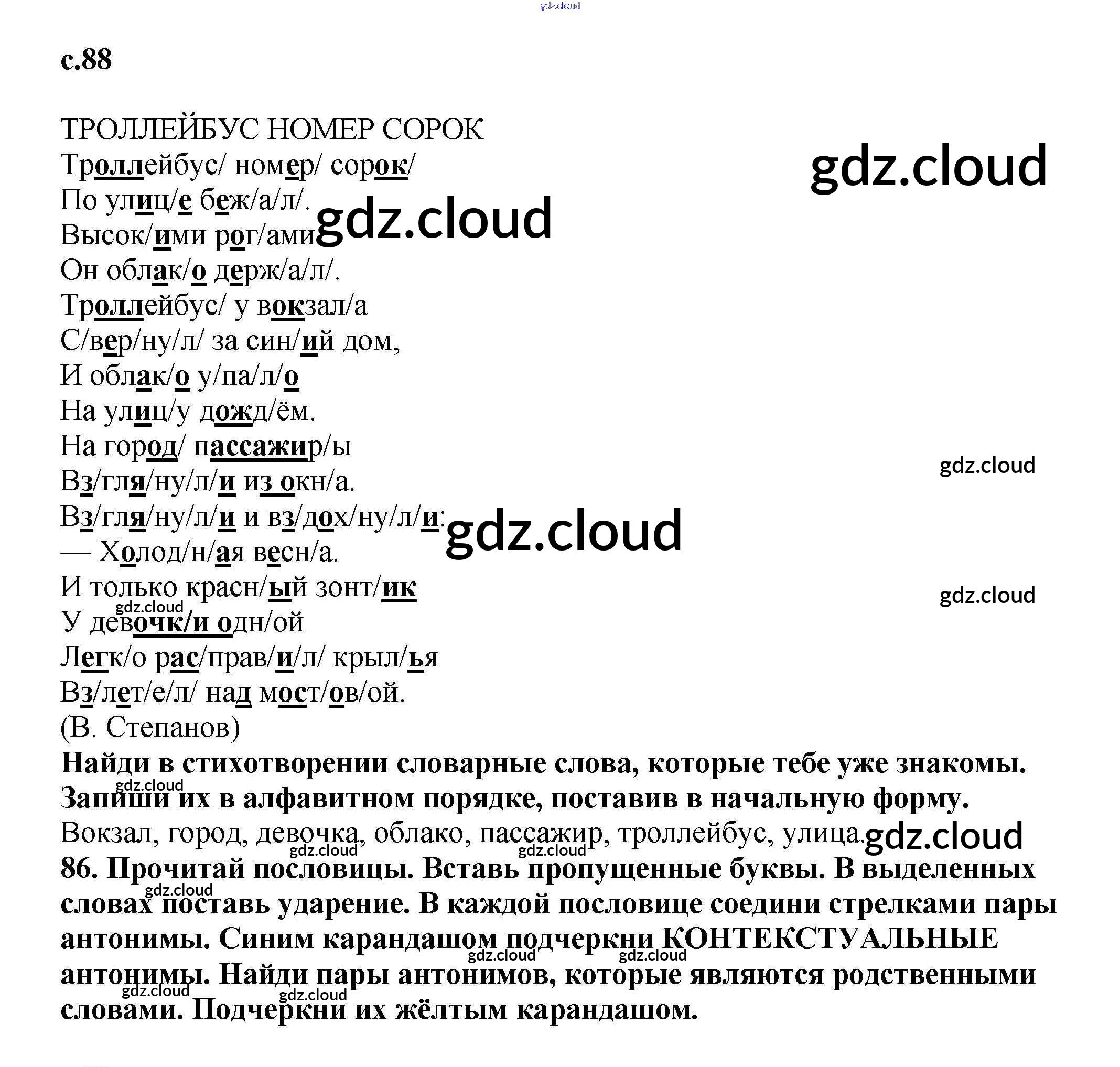 Ответ на задание 88 Тетрадь для самостоятельной работы Русский язык за 3 (третий) класс Байкова 2017 Часть 1, 2