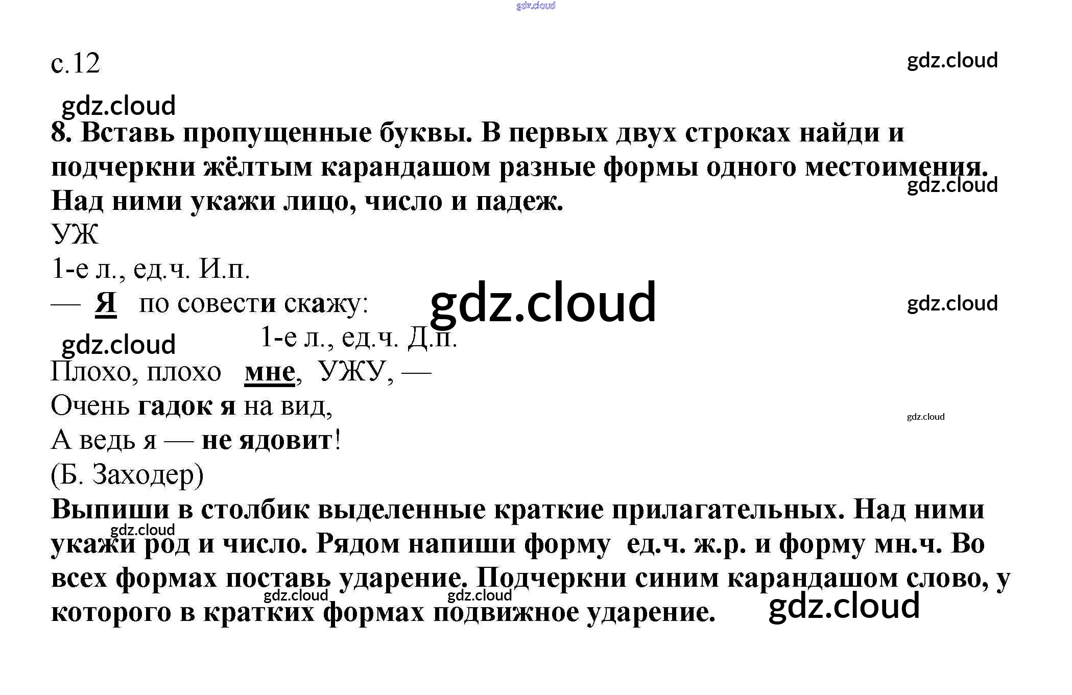 Ответ на задание 12 Тетрадь для самостоятельной работы Русский язык за 3 (третий) класс Байкова 2017 Часть 1, 2