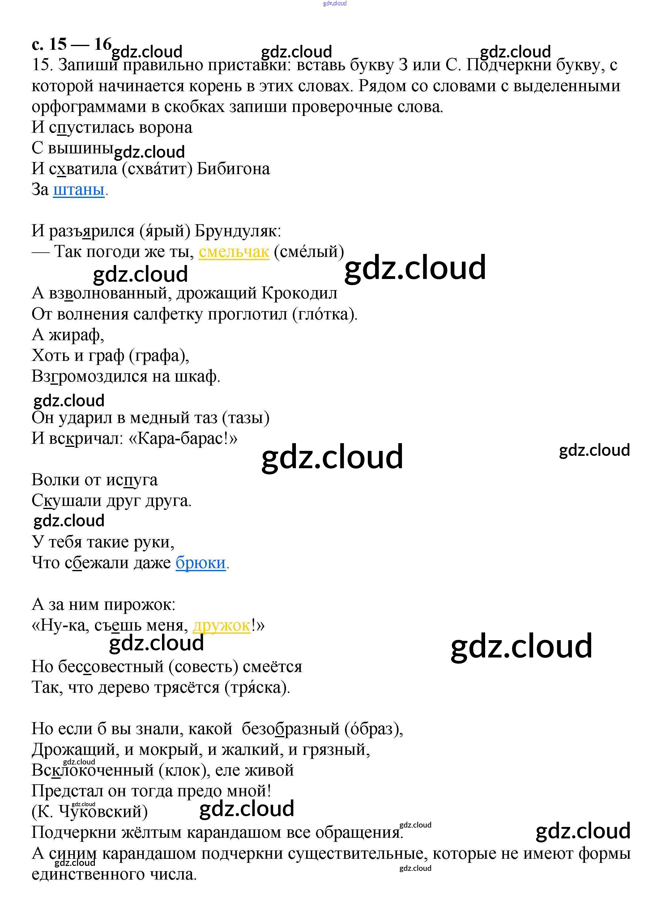 Ответ на задание 15 Тетрадь для самостоятельной работы Русский язык за 3 (третий) класс Байкова 2017 Часть 1, 2
