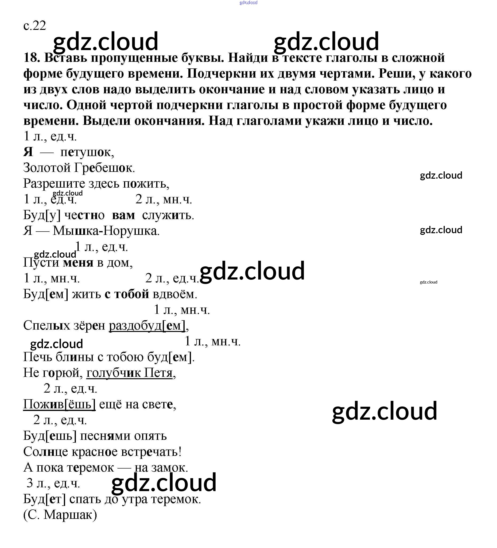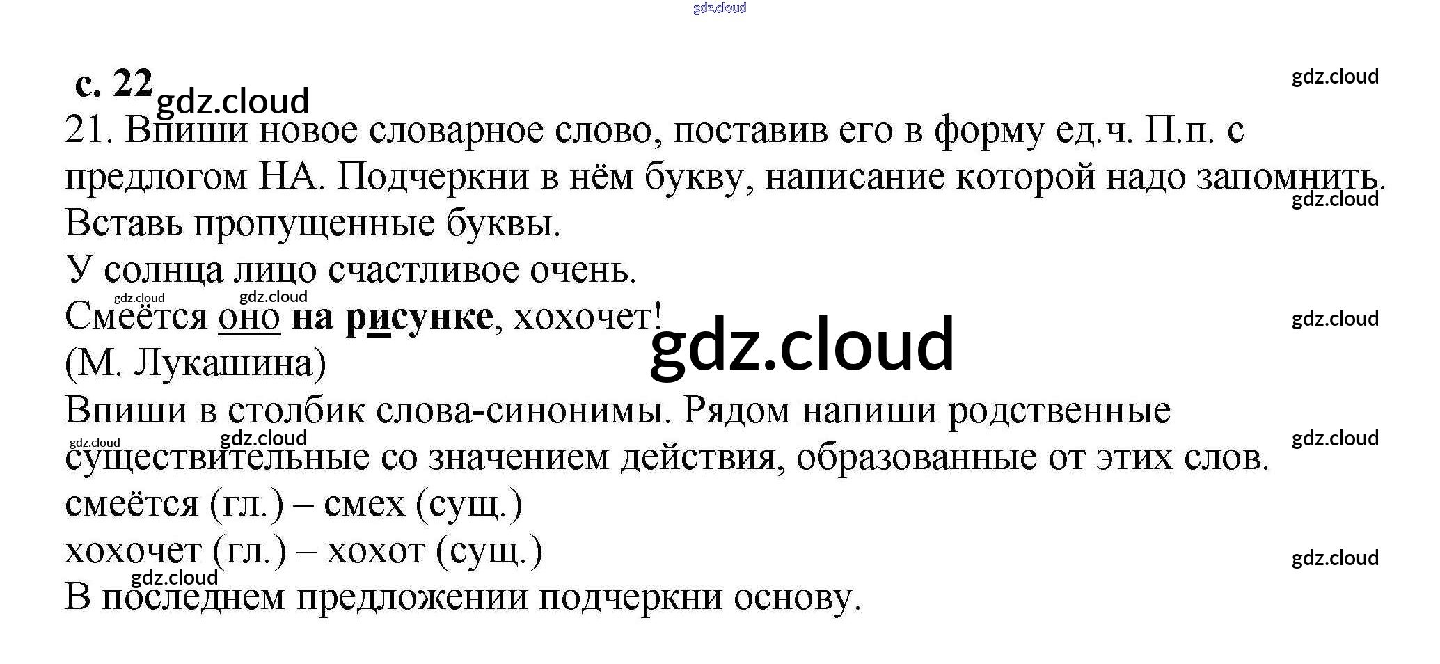 Ответ на задание 22 Тетрадь для самостоятельной работы Русский язык за 3 (третий) класс Байкова 2017 Часть 1, 2