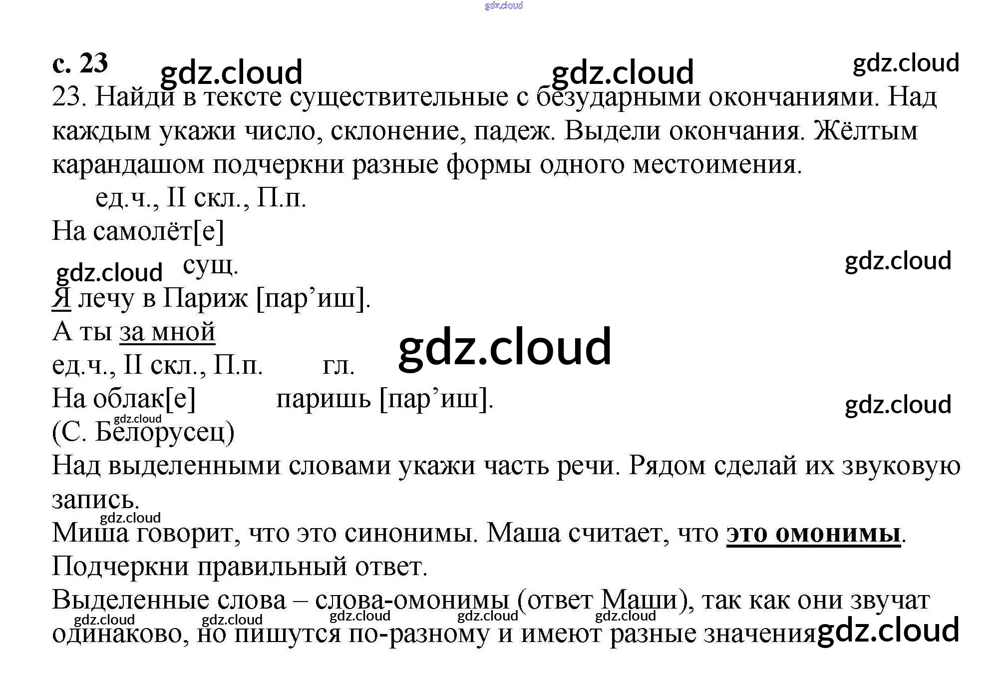 Ответ на задание 23 Тетрадь для самостоятельной работы Русский язык за 3 (третий) класс Байкова 2017 Часть 1, 2