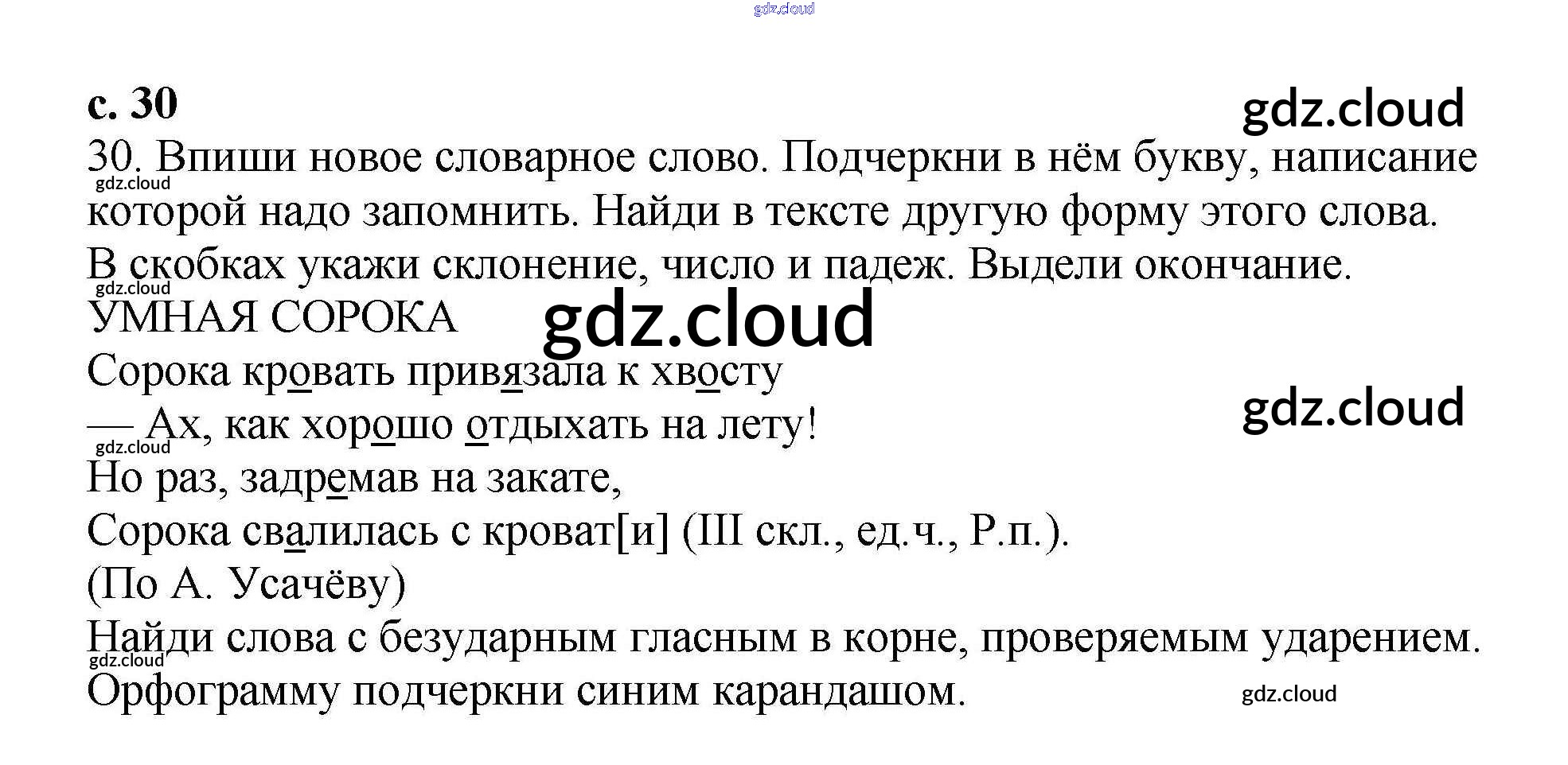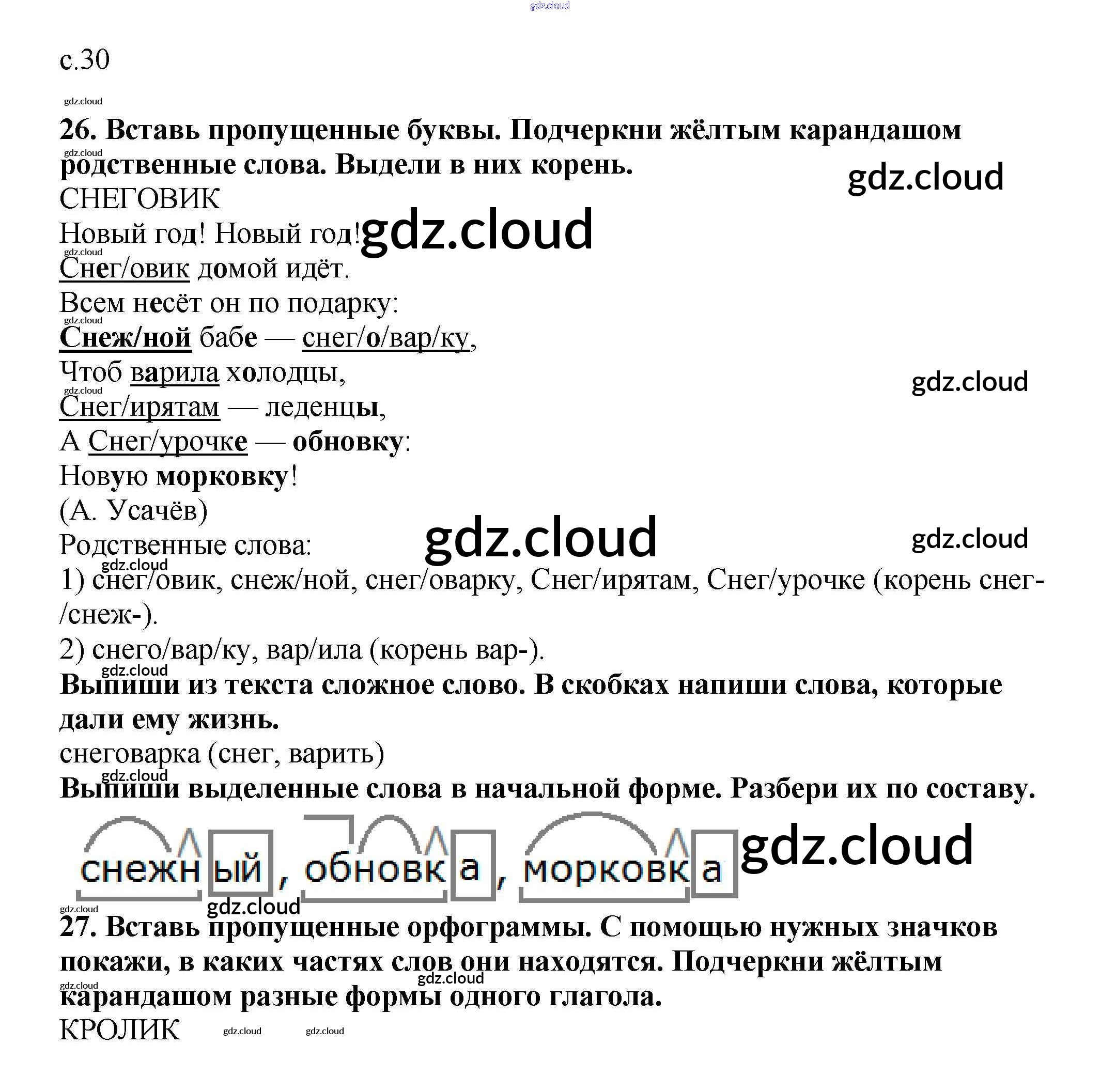 Ответ на задание 30 Тетрадь для самостоятельной работы Русский язык за 3 (третий) класс Байкова 2017 Часть 1, 2