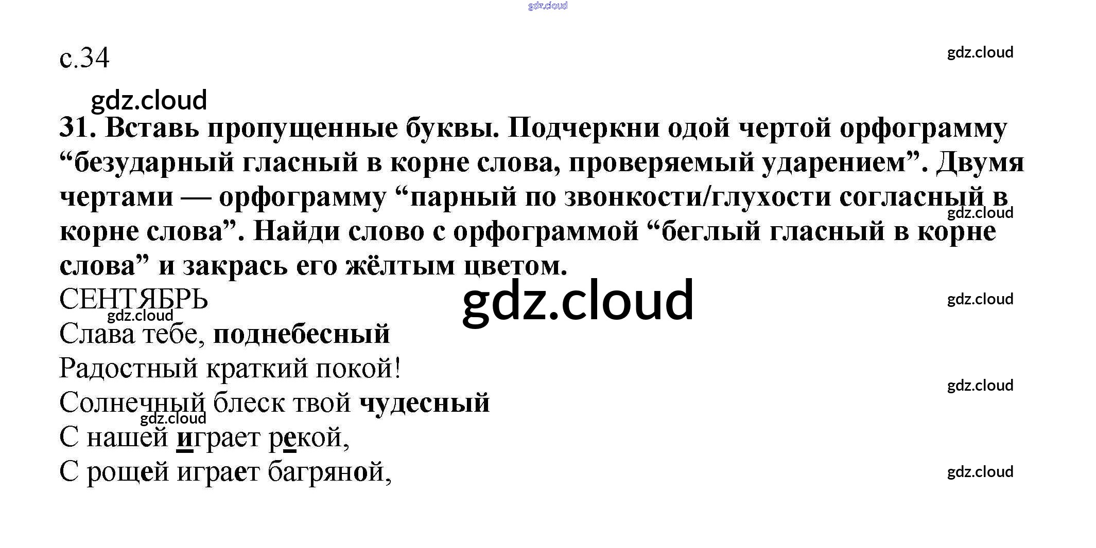 Ответ на задание 34 Тетрадь для самостоятельной работы Русский язык за 3 (третий) класс Байкова 2017 Часть 1, 2