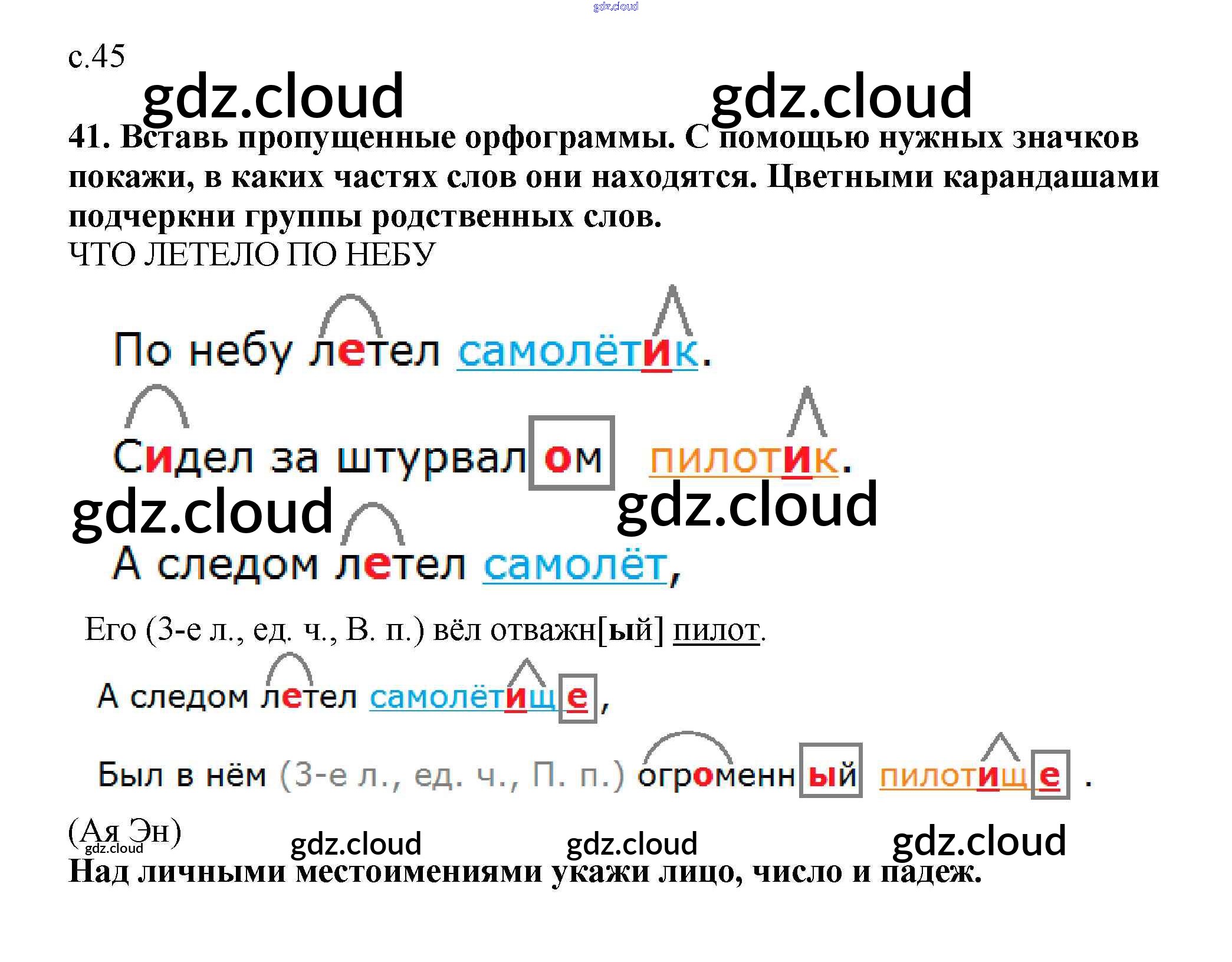 Ответ на задание 45 Тетрадь для самостоятельной работы Русский язык за 3 (третий) класс Байкова 2017 Часть 1, 2