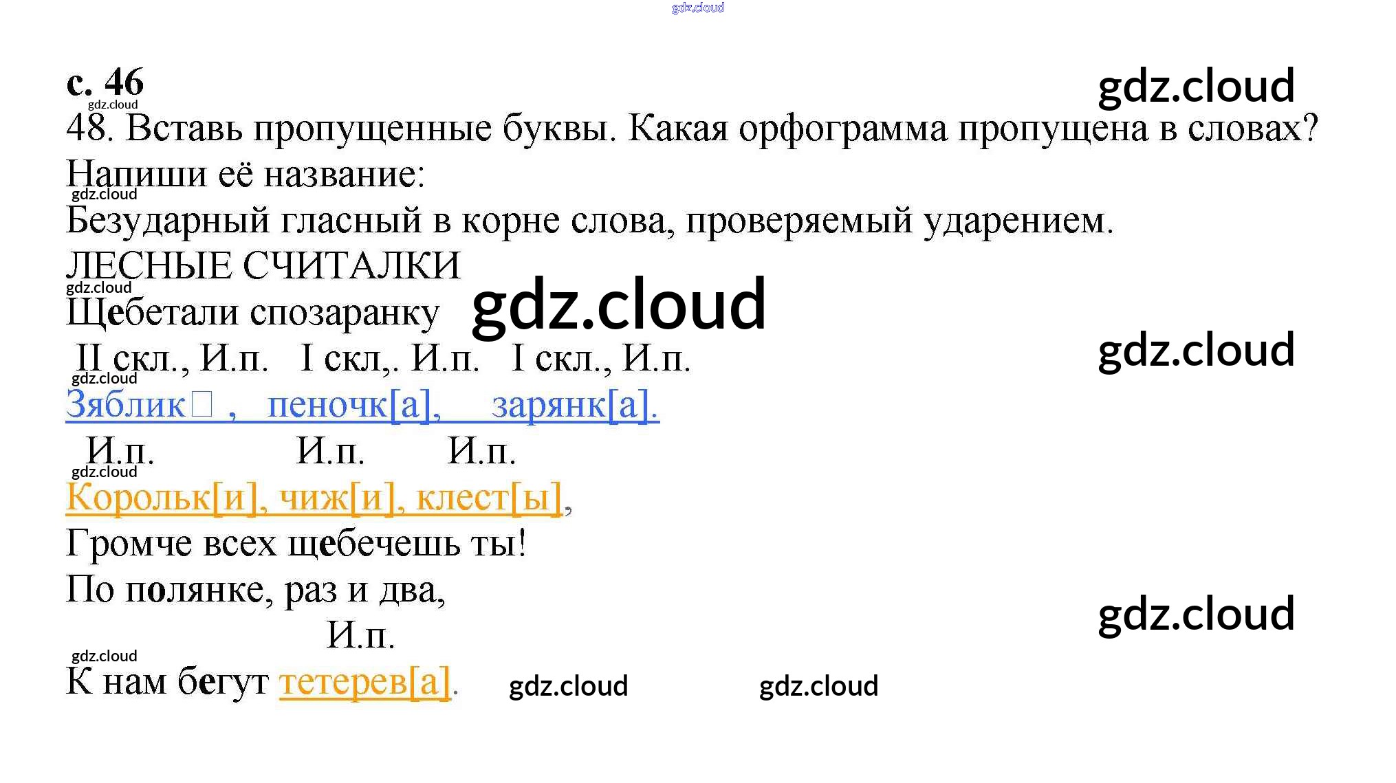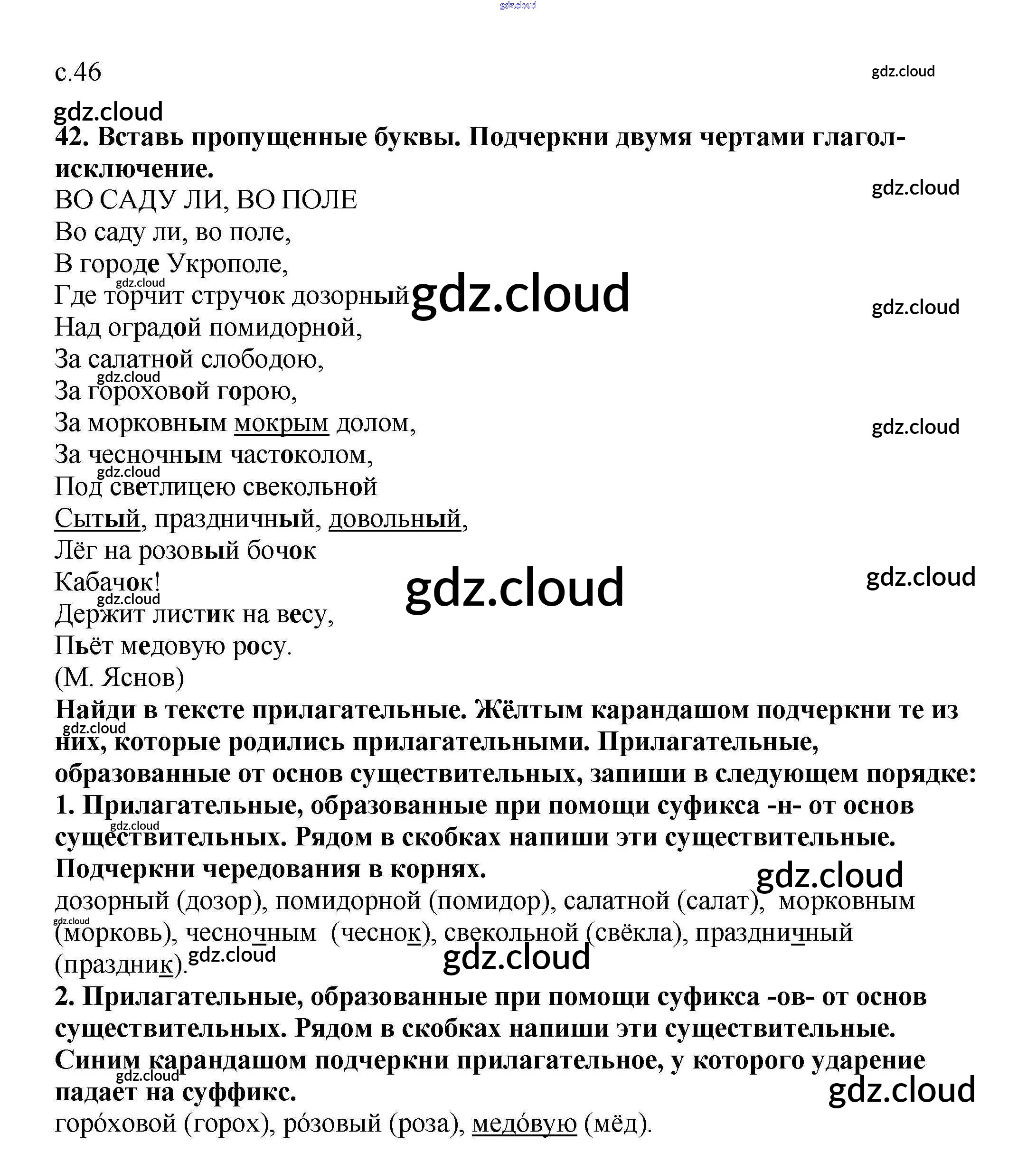 Ответ на задание 46 Тетрадь для самостоятельной работы Русский язык за 3 (третий) класс Байкова 2017 Часть 1, 2