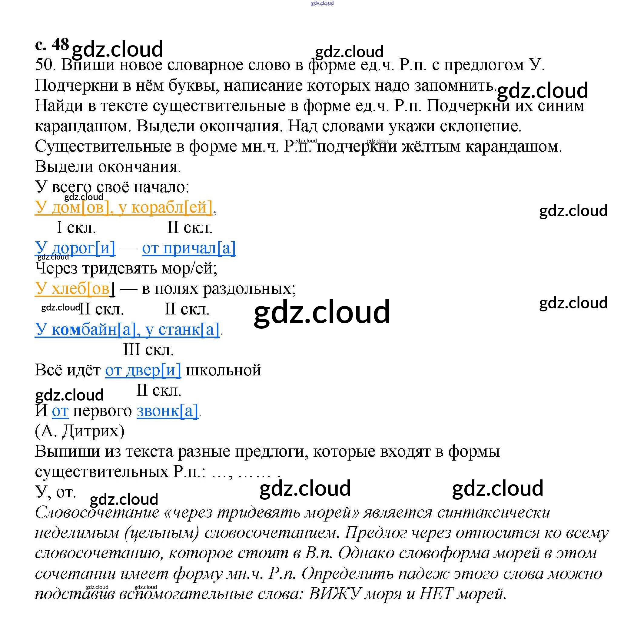 Ответ на задание 48 Тетрадь для самостоятельной работы Русский язык за 3 (третий) класс Байкова 2017 Часть 1, 2