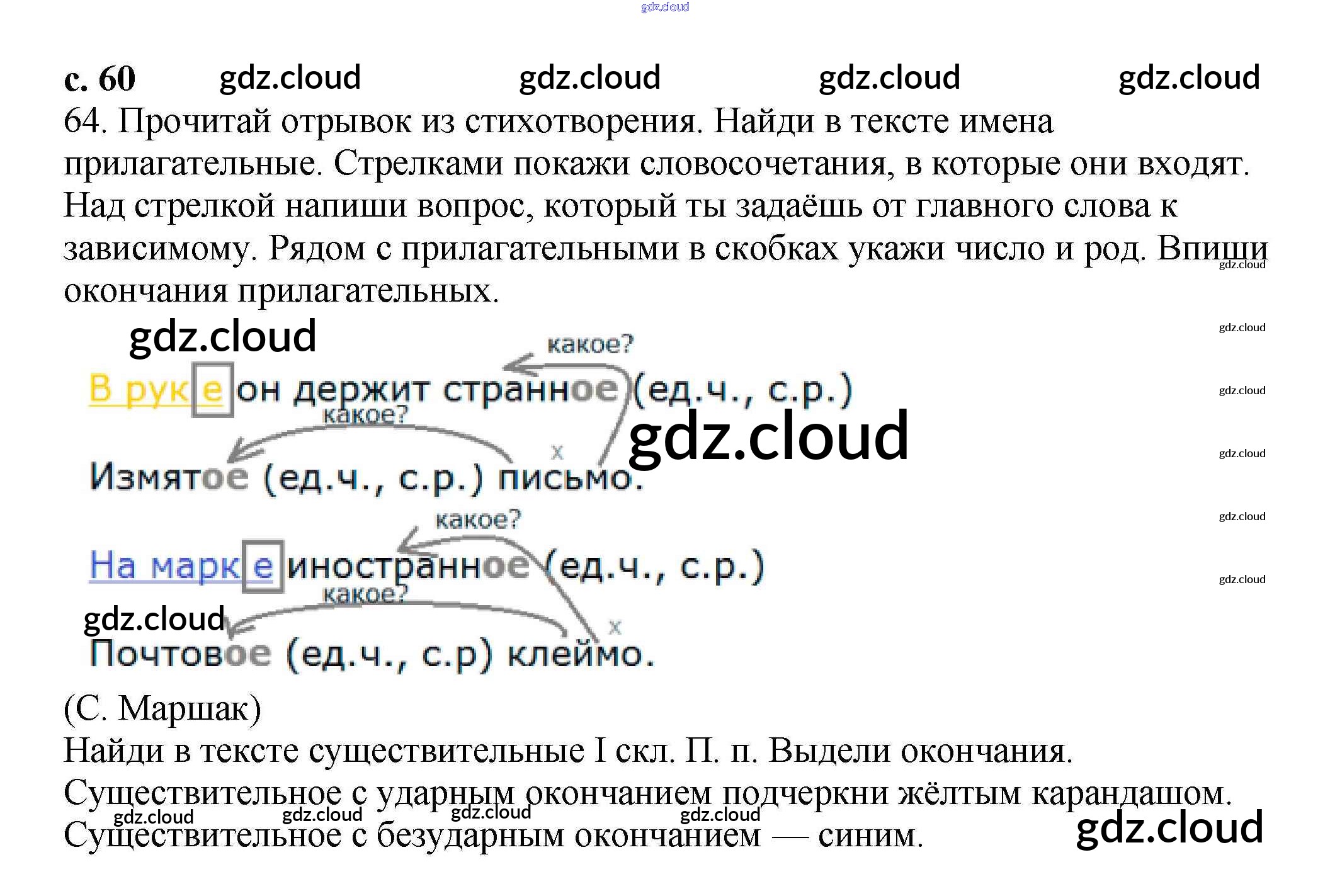 Ответ на задание 60 Тетрадь для самостоятельной работы Русский язык за 3 (третий) класс Байкова 2017 Часть 1, 2