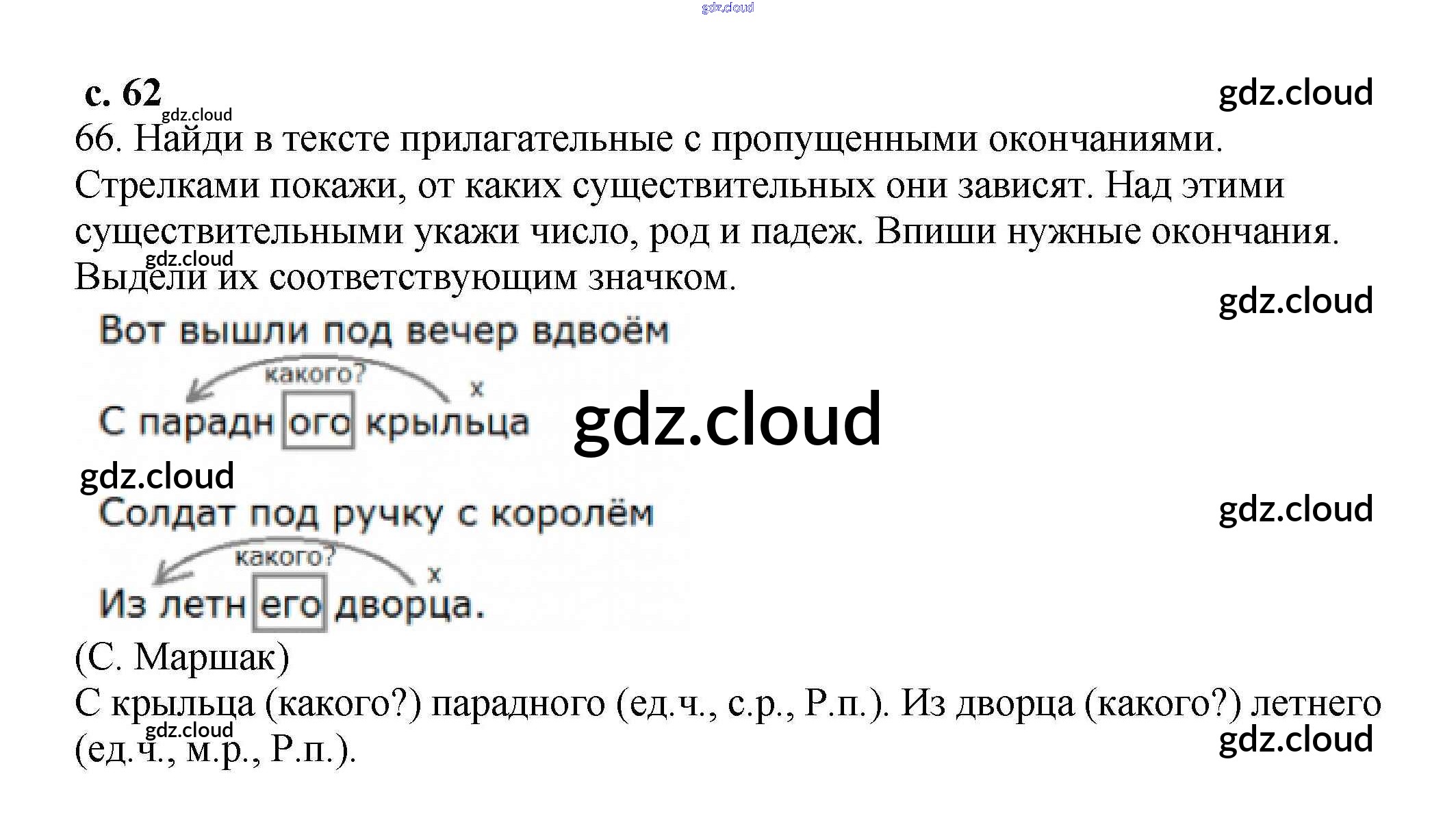 Ответ на задание 62 Тетрадь для самостоятельной работы Русский язык за 3 (третий) класс Байкова 2017 Часть 1, 2