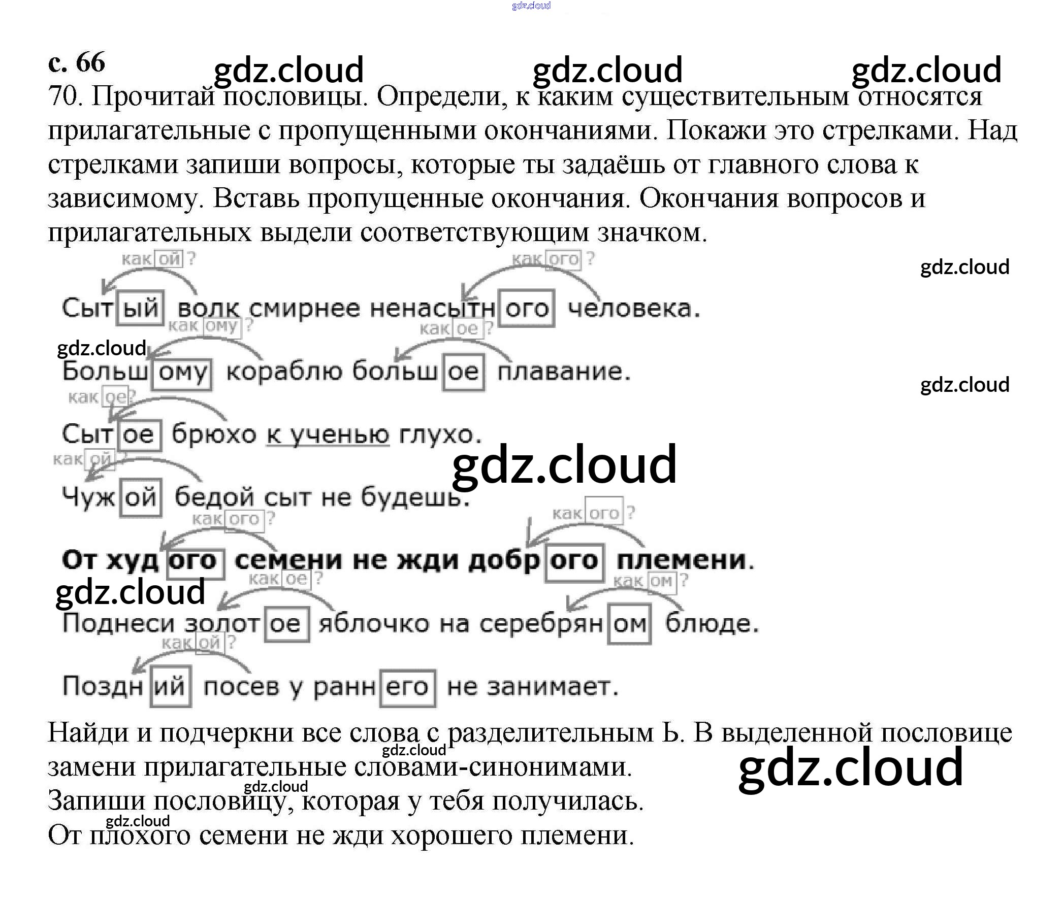 Ответ на задание 66 Тетрадь для самостоятельной работы Русский язык за 3 (третий) класс Байкова 2017 Часть 1, 2