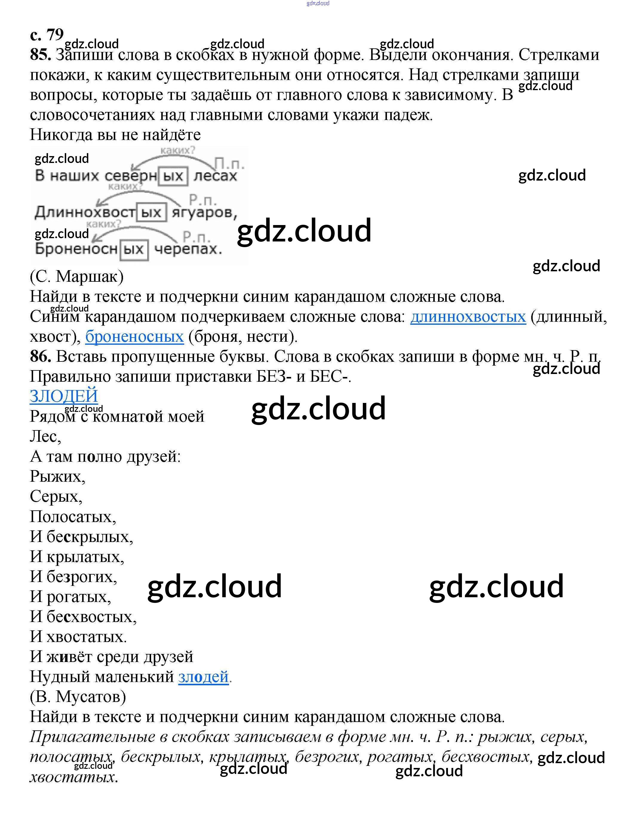Ответ на задание 79 Тетрадь для самостоятельной работы Русский язык за 3 (третий) класс Байкова 2017 Часть 1, 2