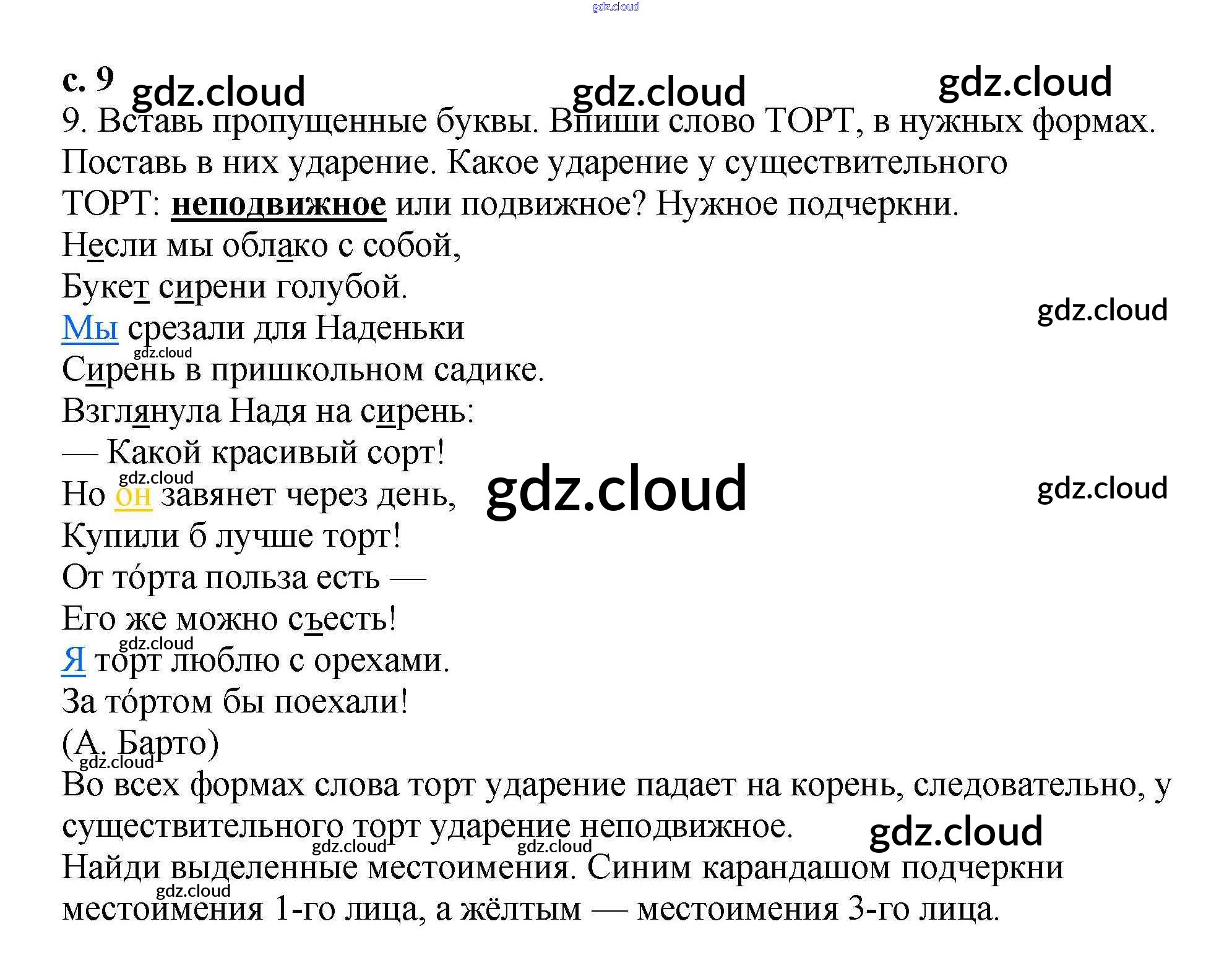 Ответ на задание 9 Тетрадь для самостоятельной работы Русский язык за 3 (третий) класс Байкова 2017 Часть 1, 2