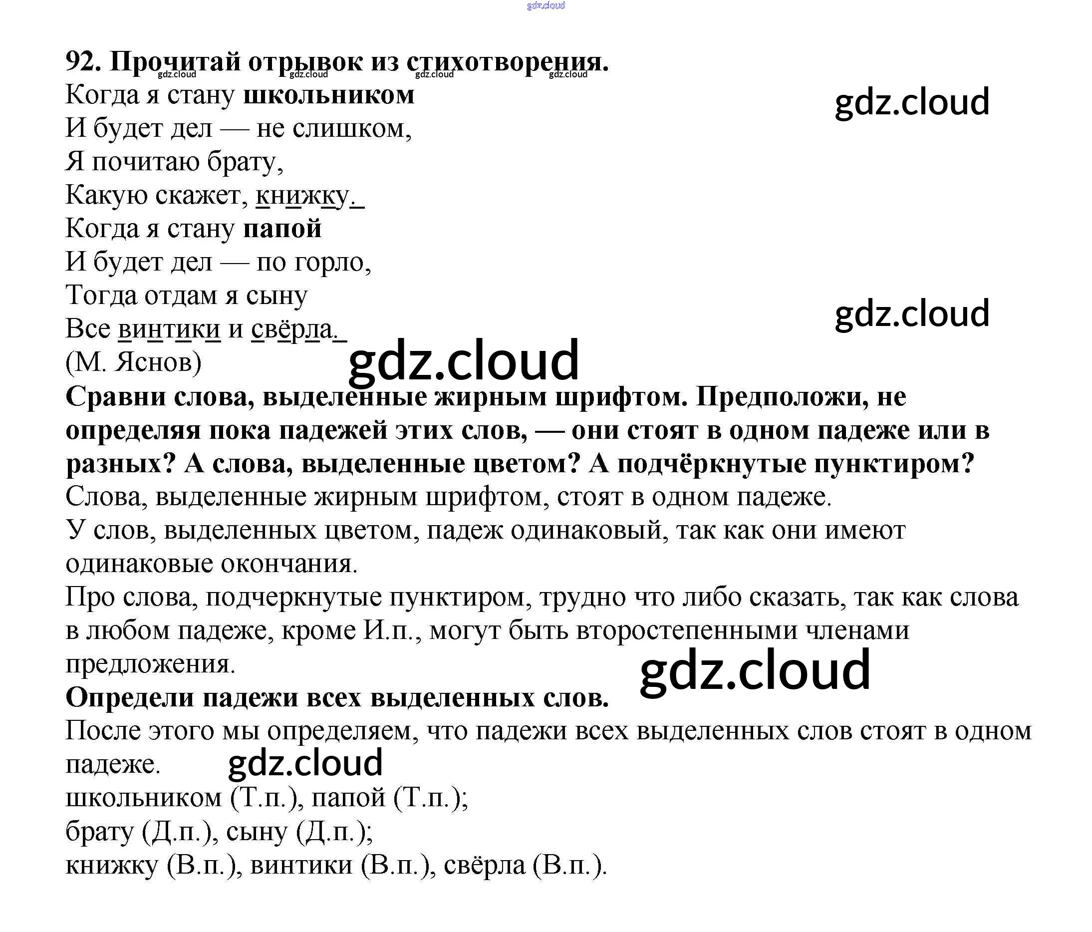 Ответ на задание 92 Учебник Русский язык за 3 (третий) класс Каленчук, Чуракова, Байкова Перспективная начальная школа 2014 Часть 1, 3