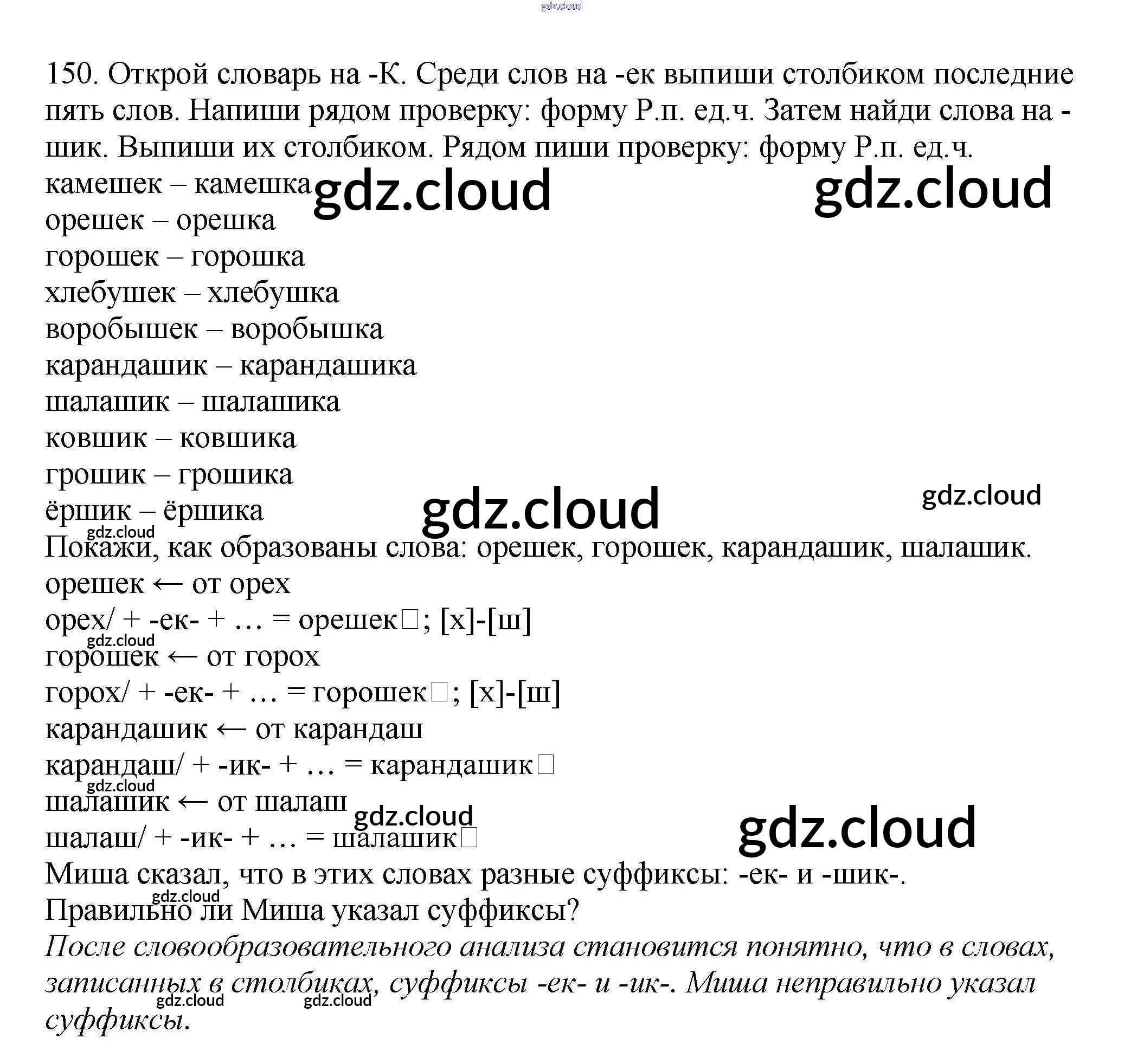 Ответ на задание 150 Учебник Русский язык за 3 (третий) класс Каленчук, Чуракова, Байкова Перспективная начальная школа 2014 Часть 1, 3