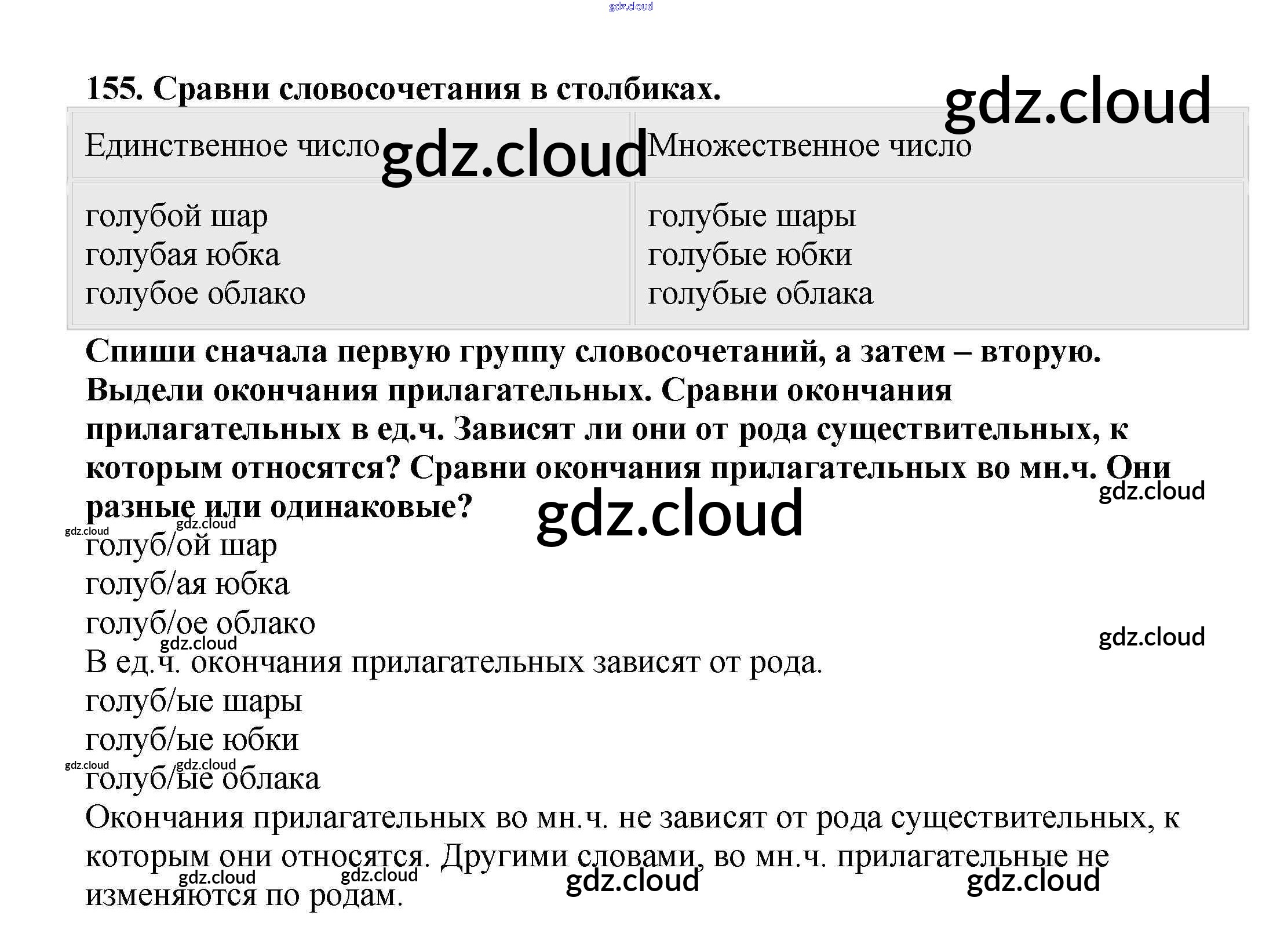 Ответ на задание 155 Учебник Русский язык за 3 (третий) класс Каленчук, Чуракова, Байкова Перспективная начальная школа 2014 Часть 1, 3