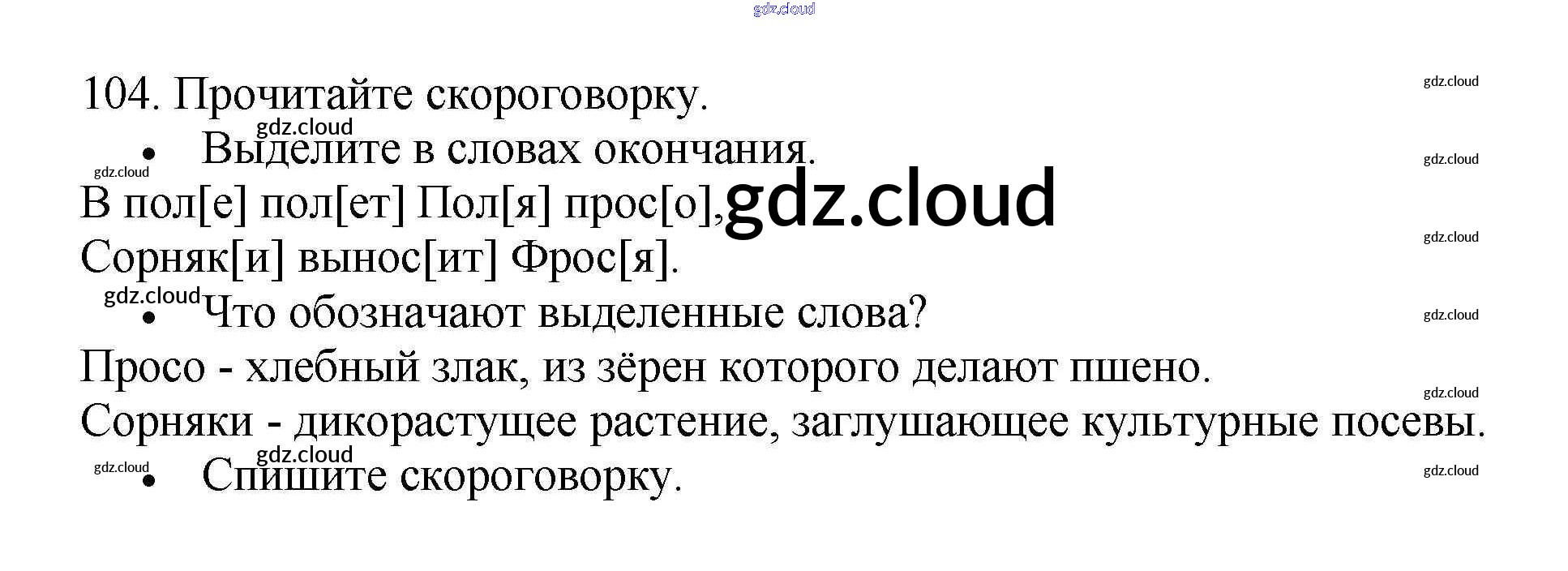 Ответ на задание 104 Рабочая тетрадь Русский язык за 3 (третий) класс Канакина Школа России 2012 Часть 1, 2