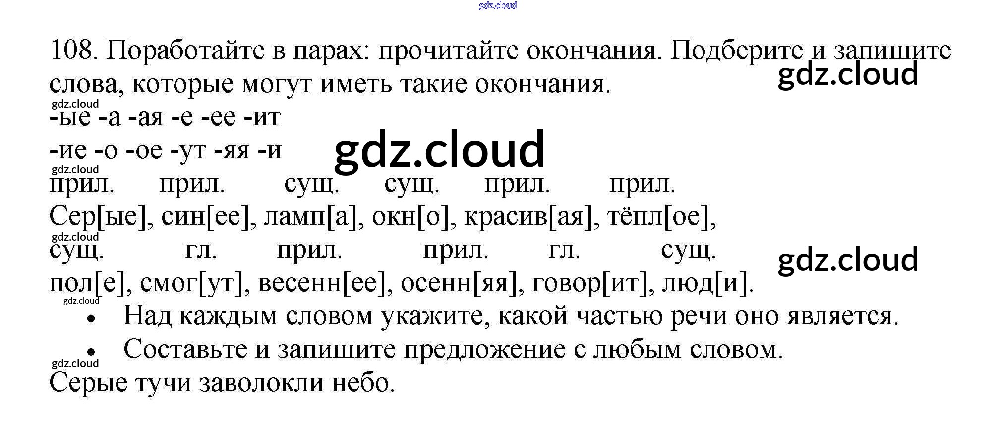 Ответ на задание 108 Рабочая тетрадь Русский язык за 3 (третий) класс Канакина Школа России 2012 Часть 1, 2