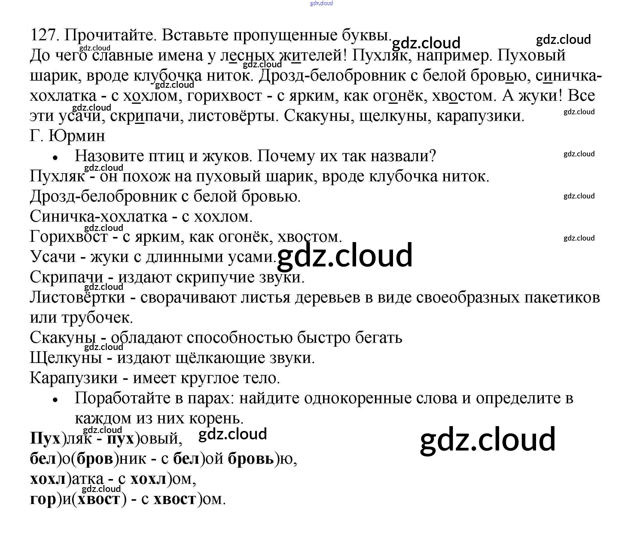 Ответ на задание 127 Рабочая тетрадь Русский язык за 3 (третий) класс Канакина Школа России 2012 Часть 1, 2