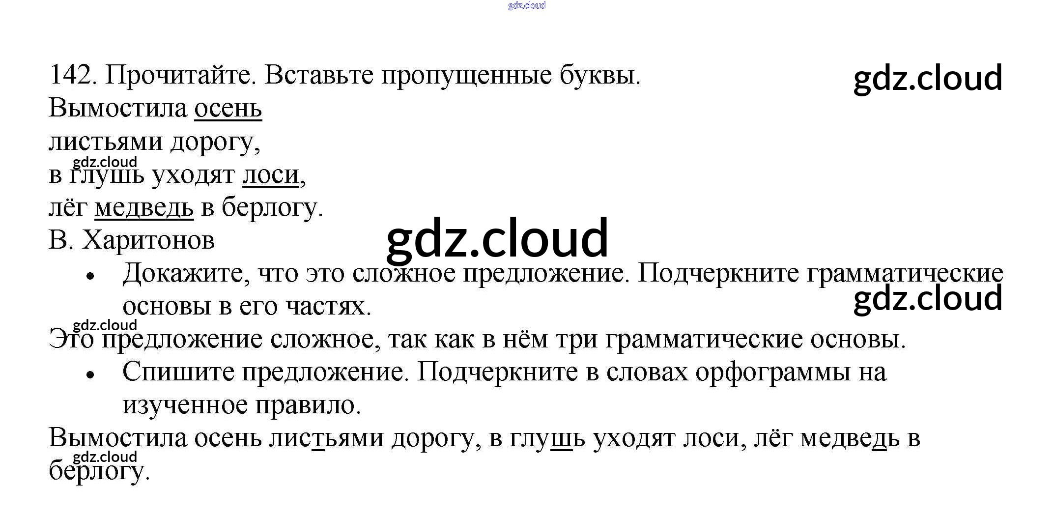 Ответ на задание 142 Рабочая тетрадь Русский язык за 3 (третий) класс Канакина Школа России 2012 Часть 1, 2