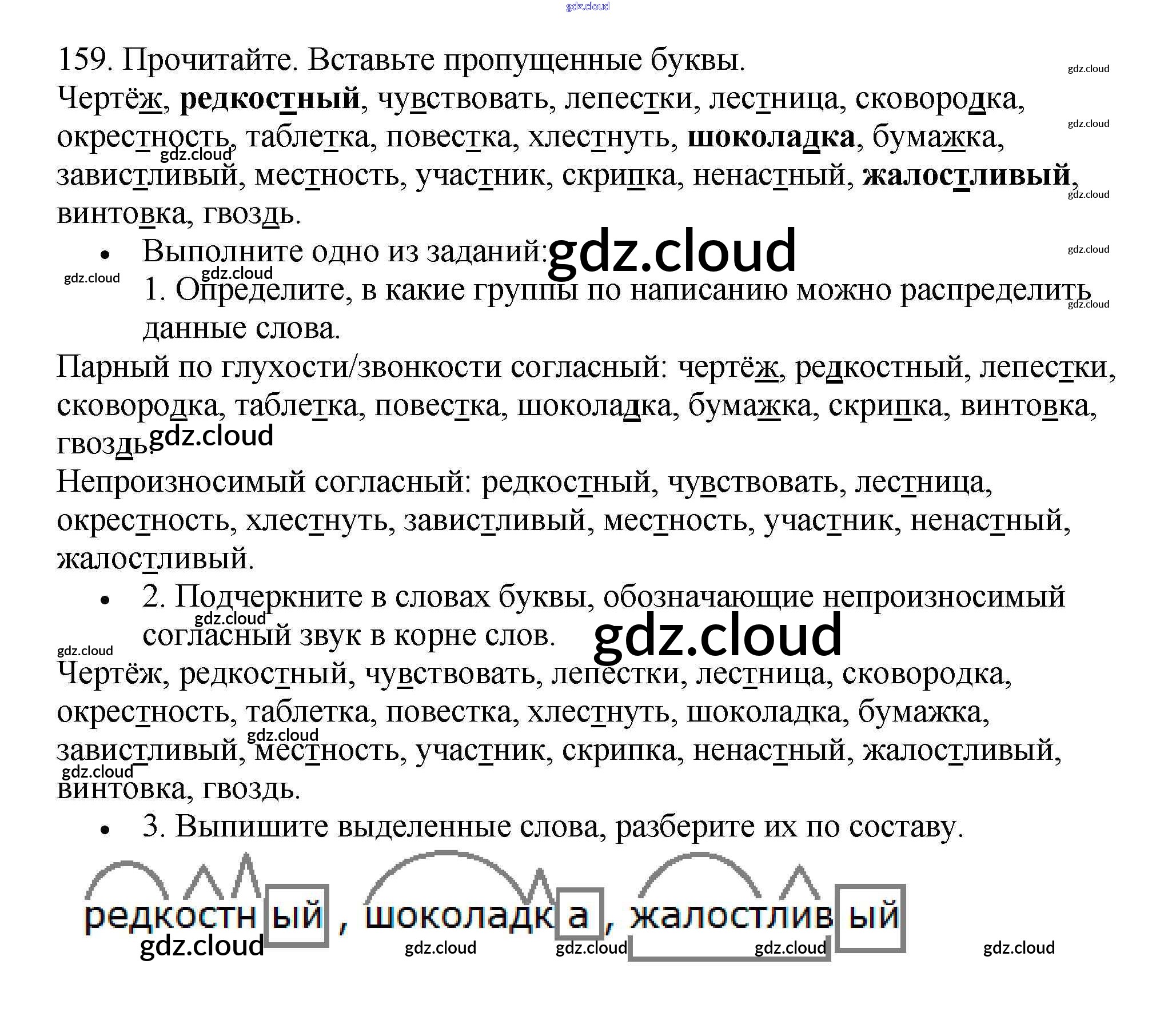 Ответ на задание 159 Рабочая тетрадь Русский язык за 3 (третий) класс Канакина Школа России 2012 Часть 1, 2