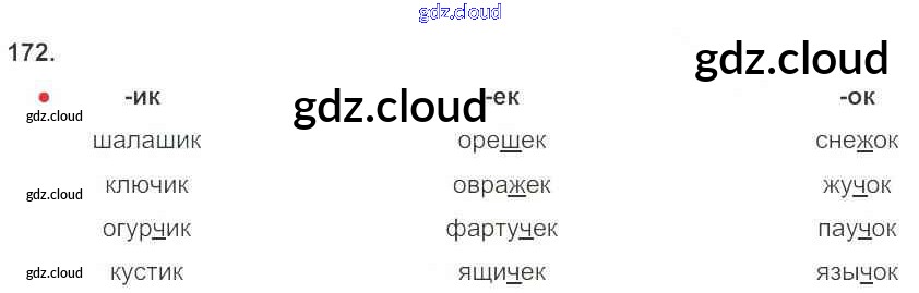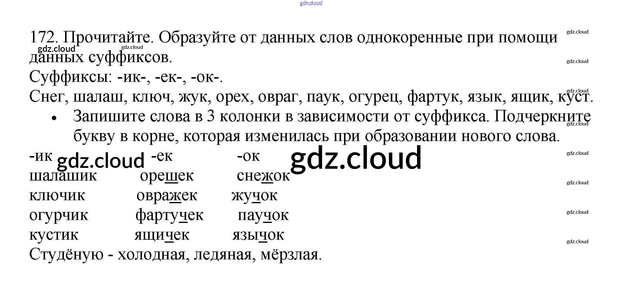Ответ на задание 172 Рабочая тетрадь Русский язык за 3 (третий) класс Канакина Школа России 2012 Часть 1, 2