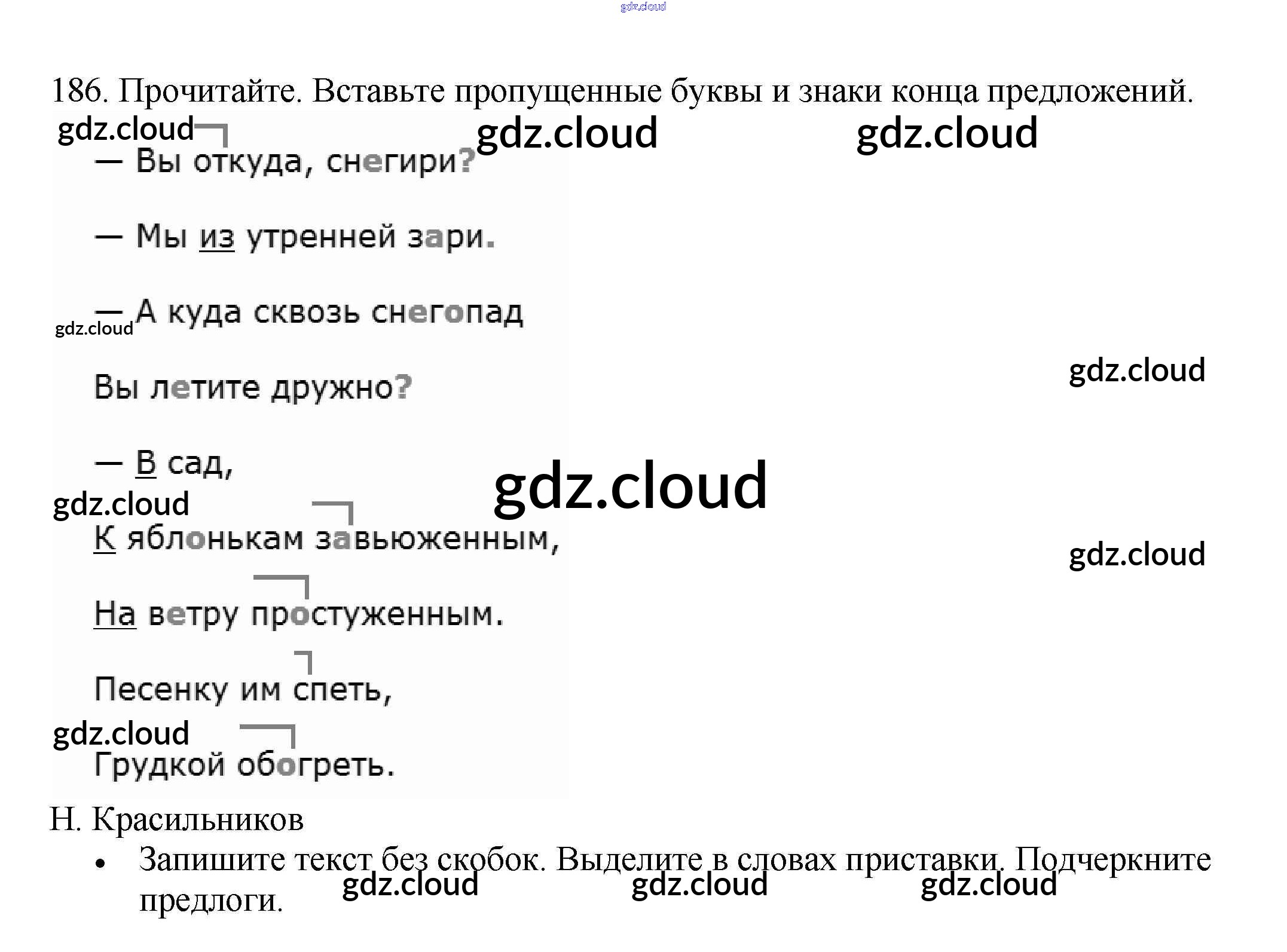Ответ на задание 186 Рабочая тетрадь Русский язык за 3 (третий) класс Канакина Школа России 2012 Часть 1, 2