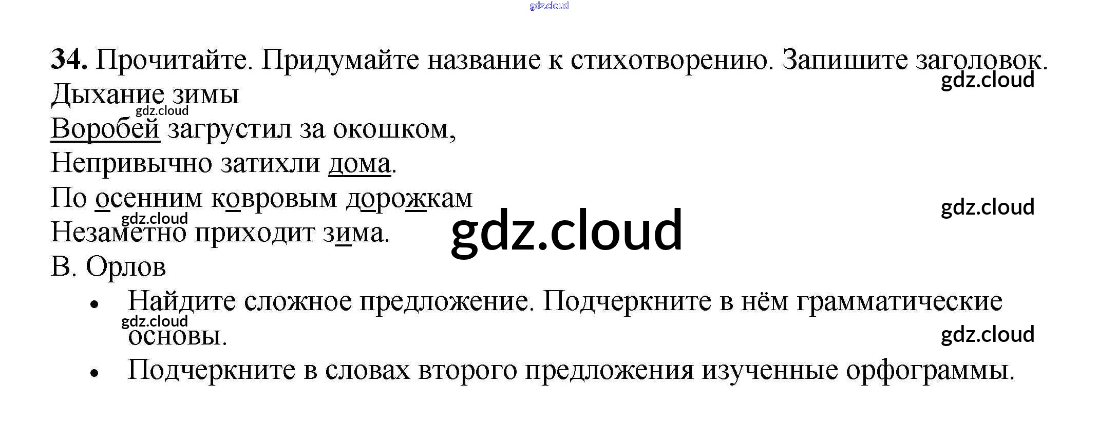 Ответ на задание 34 Рабочая тетрадь Русский язык за 3 (третий) класс Канакина Школа России 2012 Часть 1, 2