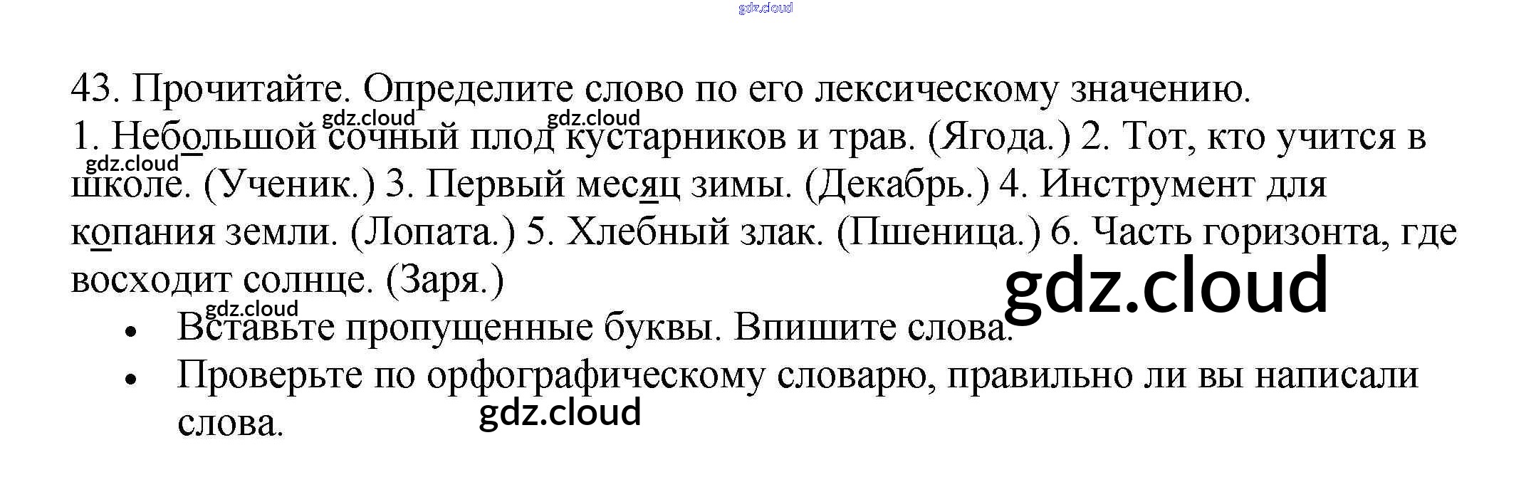Ответ на задание 43 Рабочая тетрадь Русский язык за 3 (третий) класс Канакина Школа России 2012 Часть 1, 2