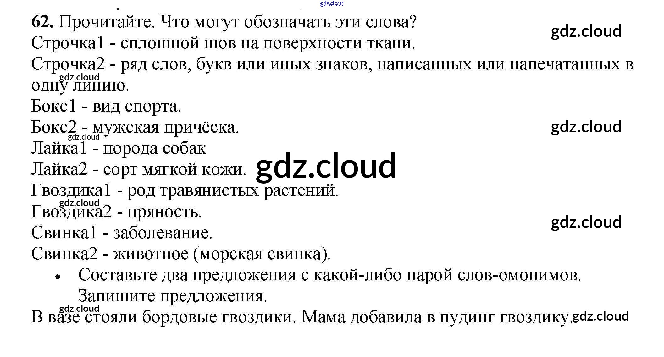 Ответ на задание 62 Рабочая тетрадь Русский язык за 3 (третий) класс Канакина Школа России 2012 Часть 1, 2